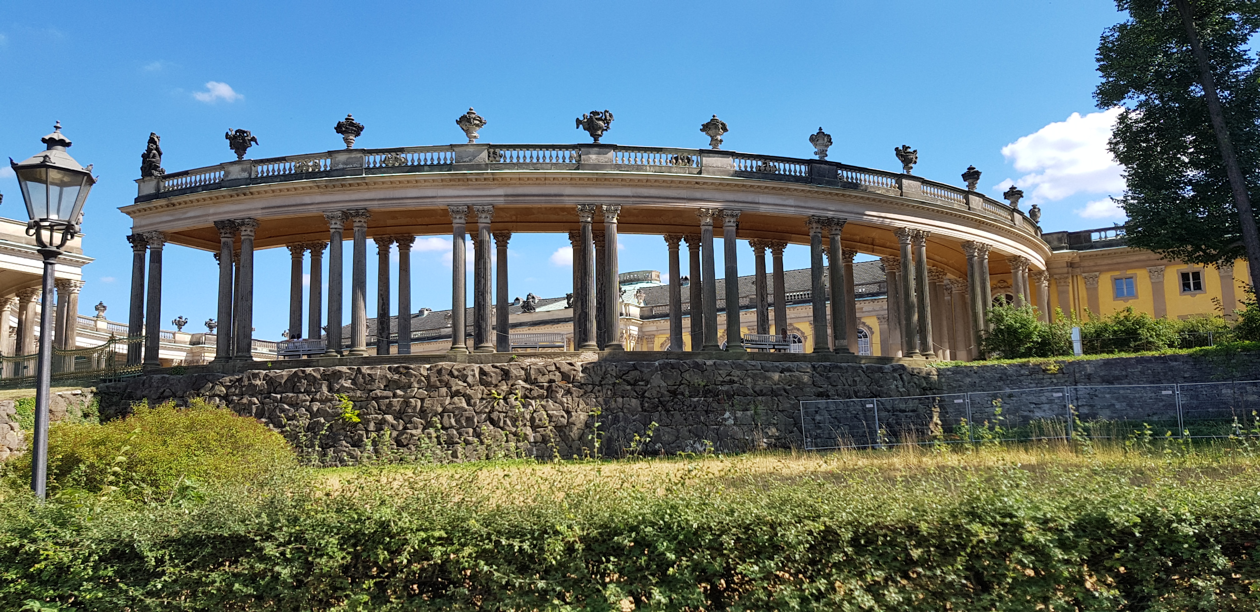 Det är näst sista dagen på vår bilsemester och vi beslutar oss för att köra upp till Sverige via Tyskland, men det finns tid för ännu en övernattning någonstans i norra delarna av landet. Skulle vi ta Berlin? Nej, då vill vi nog ha lite mer tid än bara en eftermiddag. Jag tittar runt på kartan och tänker att Potsdam som ligger strax söder om Berlin kanske kunde vara något, jag har läst att staden ska ha fina slottsparker och det vackra slottet Sanssouci (Schloss Sanssouci) ligger här.