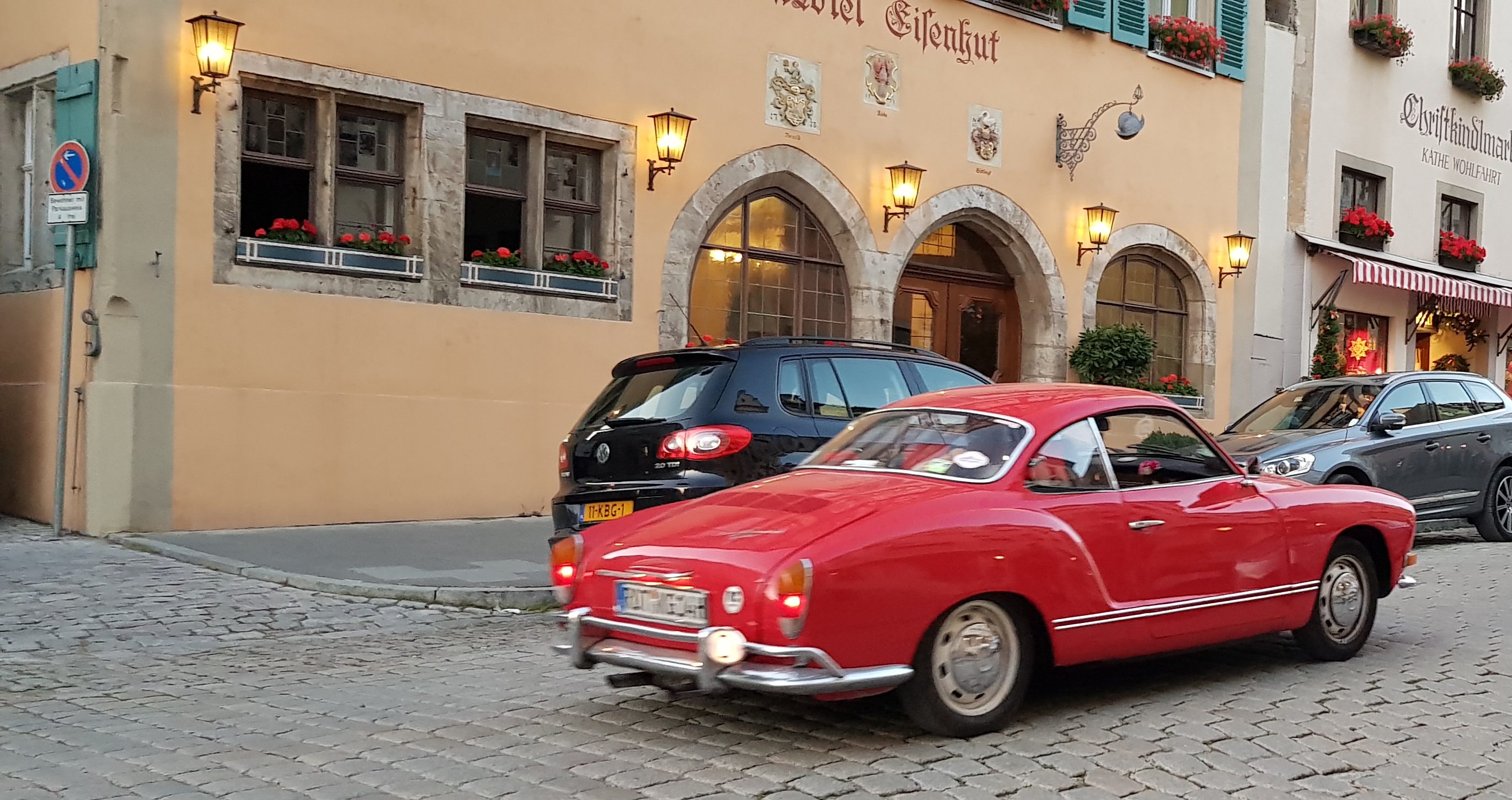Mysigt är det i Tyskland tills vi åter hamnar på autobahn där vi ganska långsamt kör söderöver. Resan ned till den så underbara staden Rothenburg ob der Tauber tar dryga sju timmar, bra men betydligt längre än vad vi räknat med. Dagens etapp blir drygt 56 mil men det blir några fler stopp än planerat när vi bland annat stannar till i Würzburg en bra stund för att leta efter starten på ”Romantiska vägen” .