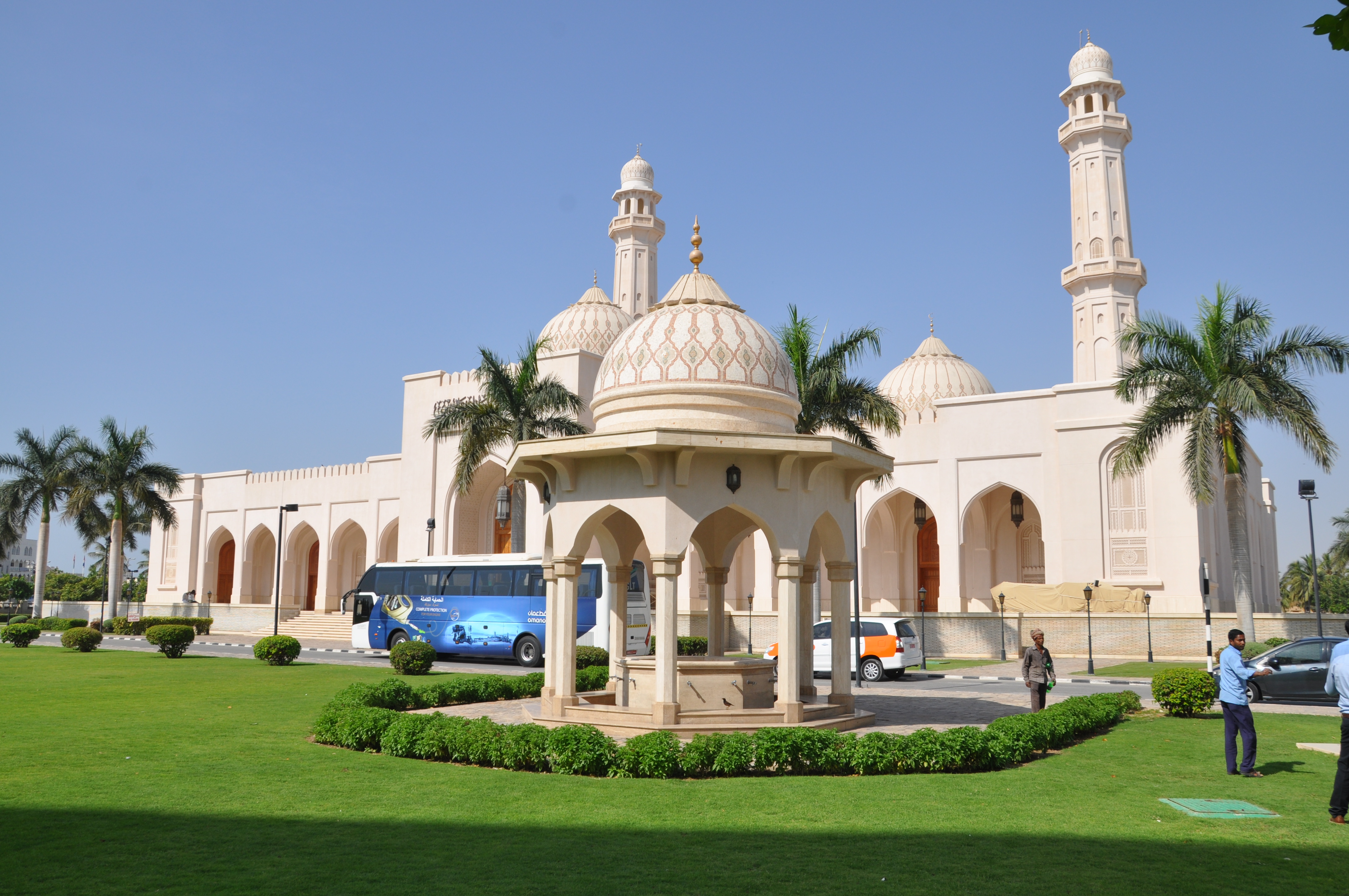 Vi åker tillsammans med en grupp om ca 20 personer på en halvdagstur. Vi ska besöka flera intressanta sevärdheter och vi startar med den stora moskén ”Sultan Qaboos Mosque”. När vi anländer till moskén är jag tvungen att springa in i närmaste butik för att köpa en sjal trots att tagit med en sådan från Sverige. Ja, jag förstår ju att man som kvinna måste dölja sitt hår om man går in i en moské, särskilt i ett strikt muslimskt land. Tyvärr lyckas jag glömma sjalen på hotellrummet men är förstås glad att det löser sig så smidigt när det finns en liten klädbutik mitt över gatan.