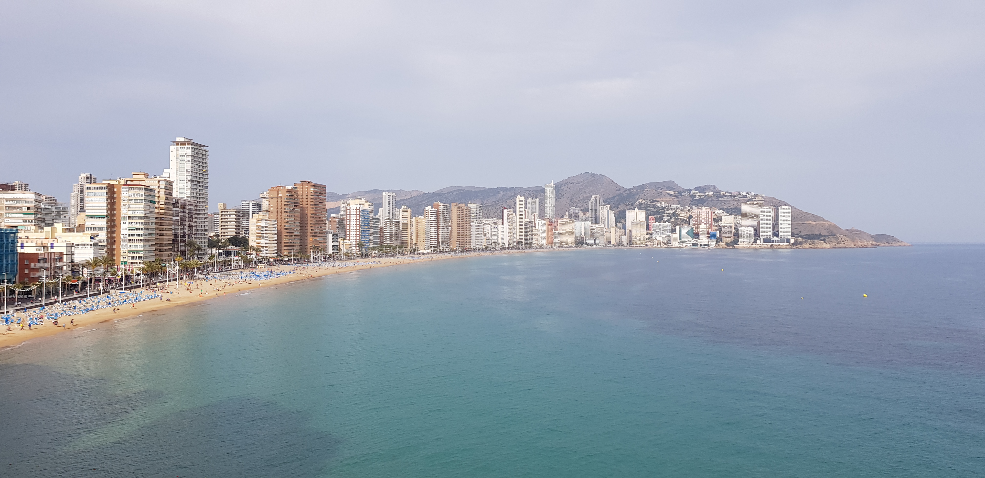 Trots att vi bara är i aprilmånad är många solsängar redan utställda på den fina stranden men här i Benidorm är det solläge hela 11 månader om året. Strändernas läge ligger relativt skyddat och gör så att solen stannar ända fram till solnedgången, det blir många soltimmar oavsett årstid.