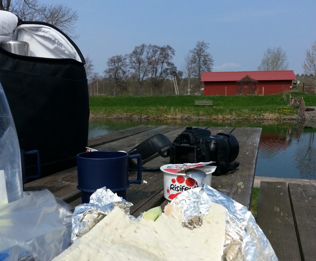 Vid Borensberg kommer solen och det blir över tjugo plusgrader. Dags för lite medhavd matsäck.
