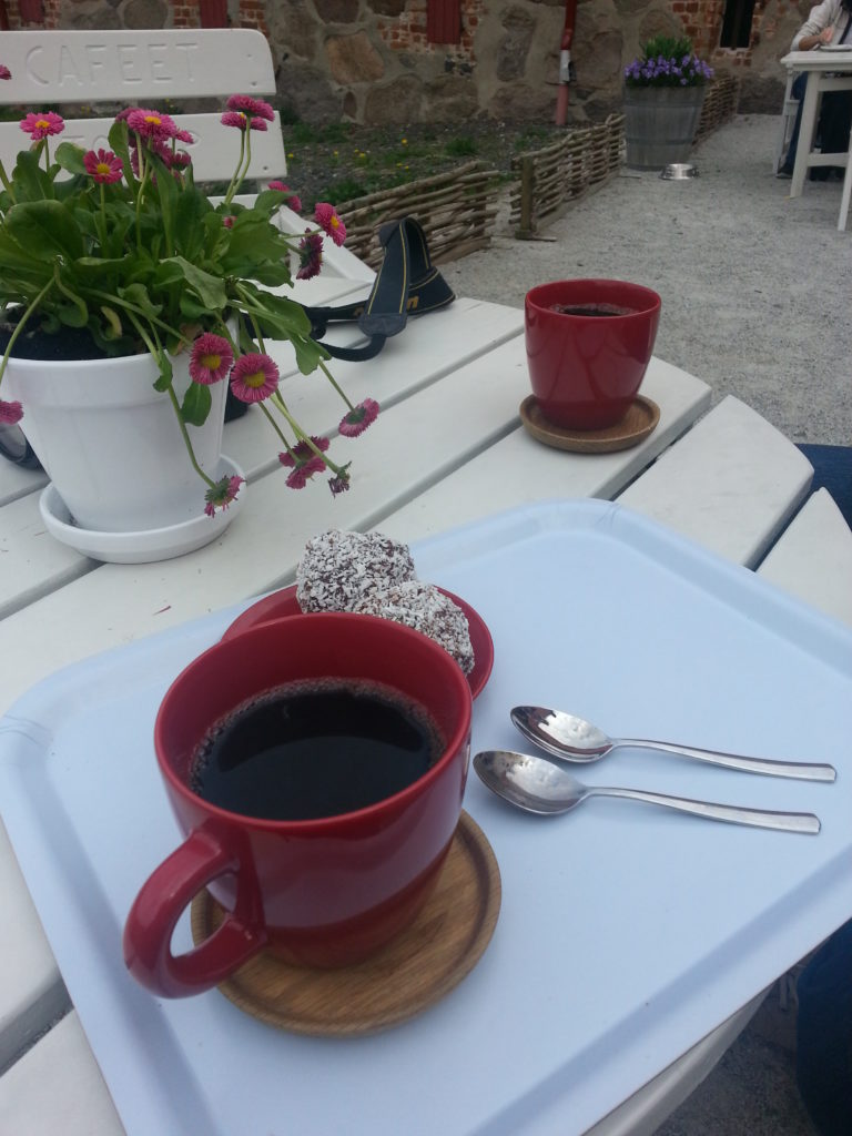 Lite fikasugna blir vi och vi passar på att te en kaffe med tillbehör på Torups slottscafé.