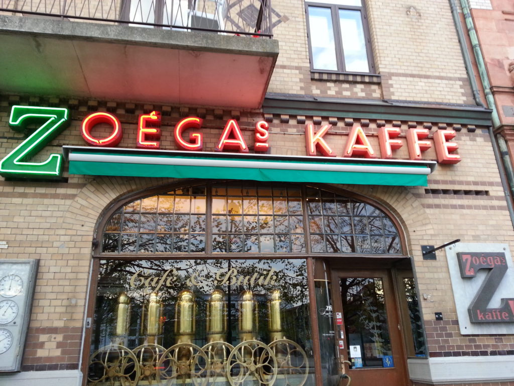 Tillbaka till Helsingborg är det bara att svida om och dra ut på stan och leta middag. Det blir kött ikväll men inte riktigt så gott som de där musslorna vi åt på Mollbergs. Efter middag är det alltid promenaddags och det är ju extra skönt att bo centralt, så att man når allt utan att behöva plocka ut bilen igen. På vår lilla promenad hittar vi en gammal bekanting, Zoegas Kaffe. Lite festligt att vi en stund senare, när vi är på väg hemåt, springer på Carlos Zoegas gravplats. Två nätter rusar förstås iväg och det är verkligen härligt att komma ner till Skåne dessa sköna majdagar. Om bara några dagar så kommer förmodligen rhododendron blomma för fullt men då är inte vi här.