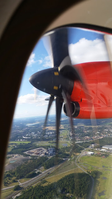 Vi väljer flyget över till Visby, dyrt men väl värt pengarna för den tid man sparar när det bara tar 45 minuter från start till landning. Så här i slutet av veckan brukar jag känna mig lite trött efter veckans jobb, men att få göra en liten minisemester ger bra energi.