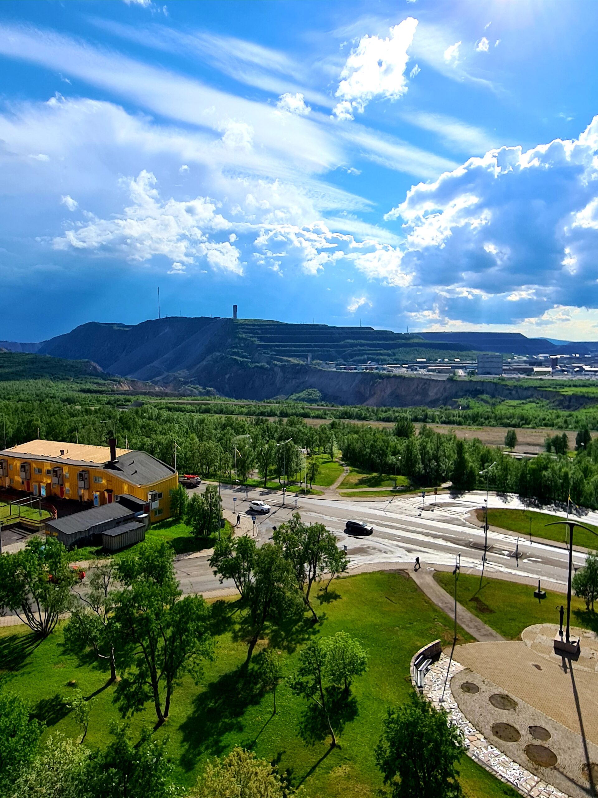 Så når vi fram till Kiruna, något oväder har ännu inte hunnit ifatt oss men vi ser hur de mörka molnen kommer allt närmare. Vi checkar in oss på Hotell Scandic som ligger mitt i Kiruna centrum. Det är inte mer än åtta år sedan vi var i Kiruna sist och då reste vi med våra bägge hundar. Nu är vi åter här och vi känner igen oss rätt bra, men ändå inte. En hel del har redan börjat flytta från den här delen av Kiruna till en nytt område.