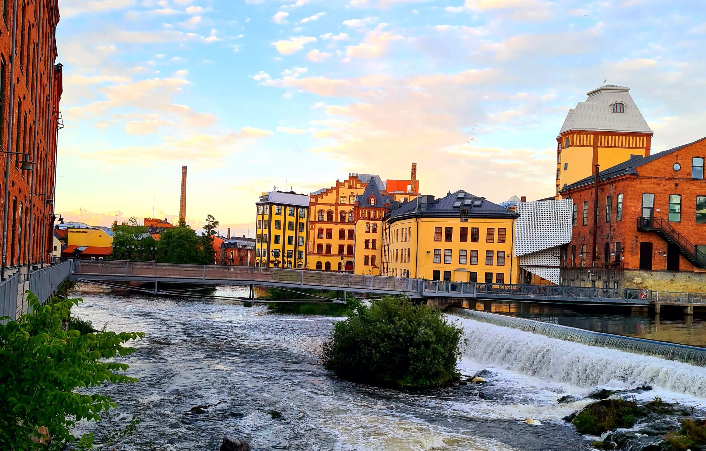 En sommarkväll i Norrköping erbjuder en speciell blandning av historia och stadsliv. Industrilandskapet med sina gamla fabriker och kanaler badar i kvällsljus, och längs promenadstråken kan man njuta av stadens charm, stillhet och vackra arkitektur på samma gång.