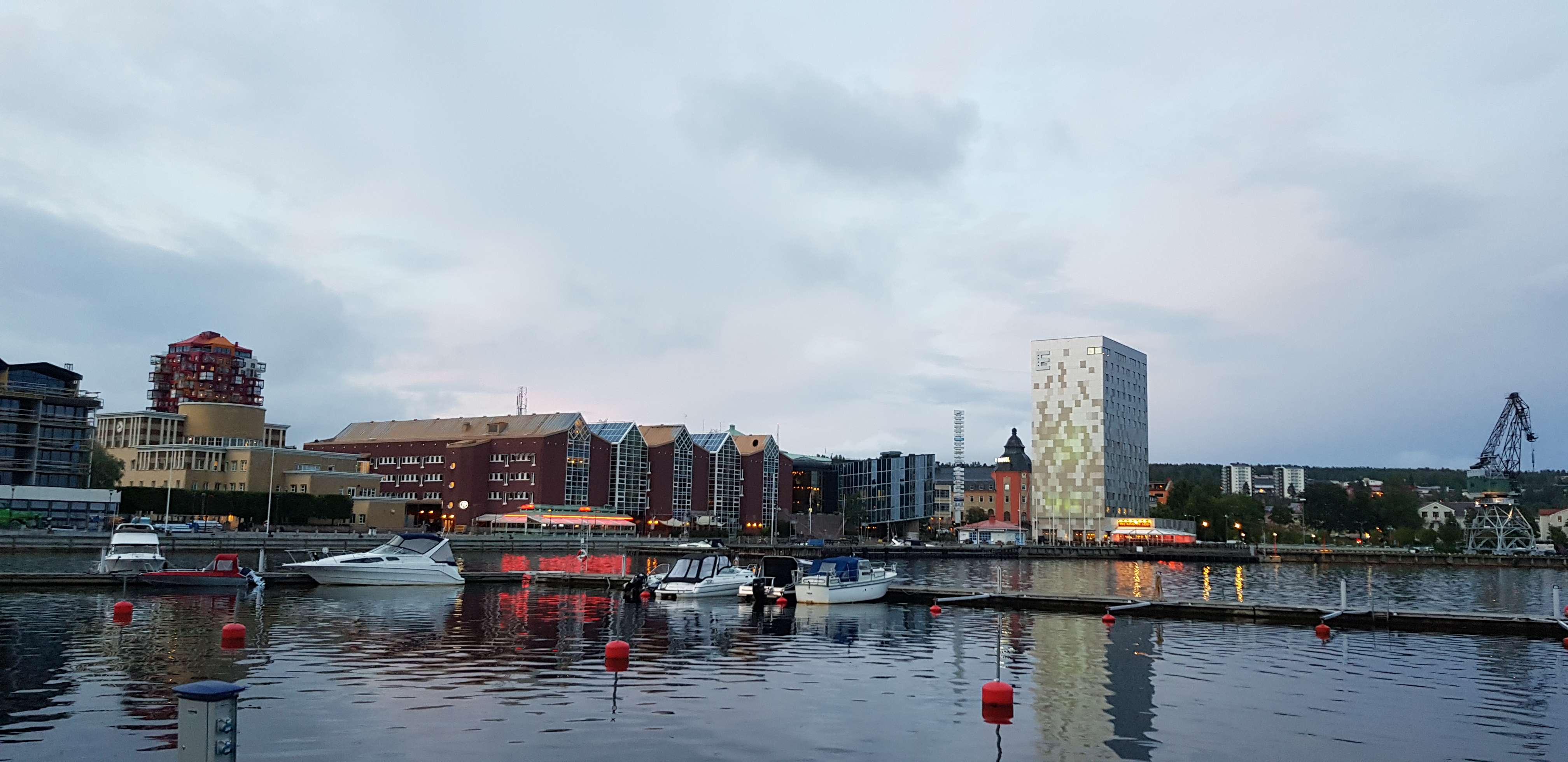 Efter vår tur från Sundsvall med en liten avstickare ut till Nordingrå och Bönhamn kommer vi fram till Örnsköldsvik som ligger så vackert vid havet. Härligt att se dessa trevliga städer norröver och som vi borde ha gjort långt tidigare, men bättre sent än aldrig. Tyvärr blir besöken alldeles för korta när man bara reser över helgen men vi försöker hinna med så gott det går ändå. Det får bli en tur till fots i närområdet och därför är det ju bra att bo så centralt som möjligt.
