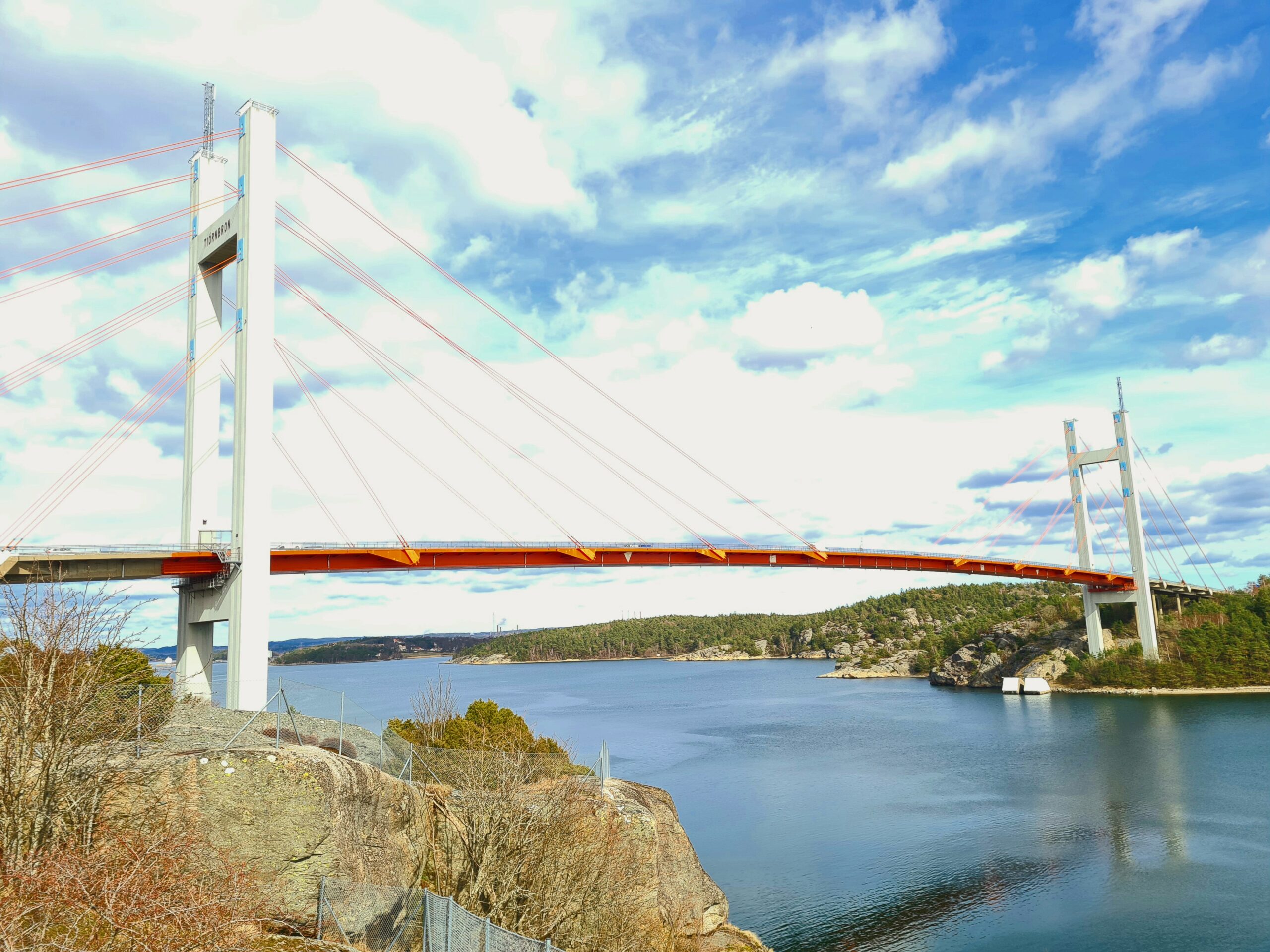 Jag har bokat in oss på Thorskogs slott för övernattning i närheten av Lilla Edet men vi är lite tidiga och får plötsligt tid över. Vi funderar över om vi skulle kunna göra någon liten avstickare och kommer på att bohuslänska Tjörn kan vara ett bra alternativ. Dessutom har vi aldrig varit på Tjörn så vi tror oss hinna en liten tripp dit över. Entrén över till Tjörn är imponerande när vi anländer från Stenungsund. På långt håll kan vi ana att det är en vacker bro som vi ska få köra på och det är det minsta man kan säga när vi kommer fram till brofästet.