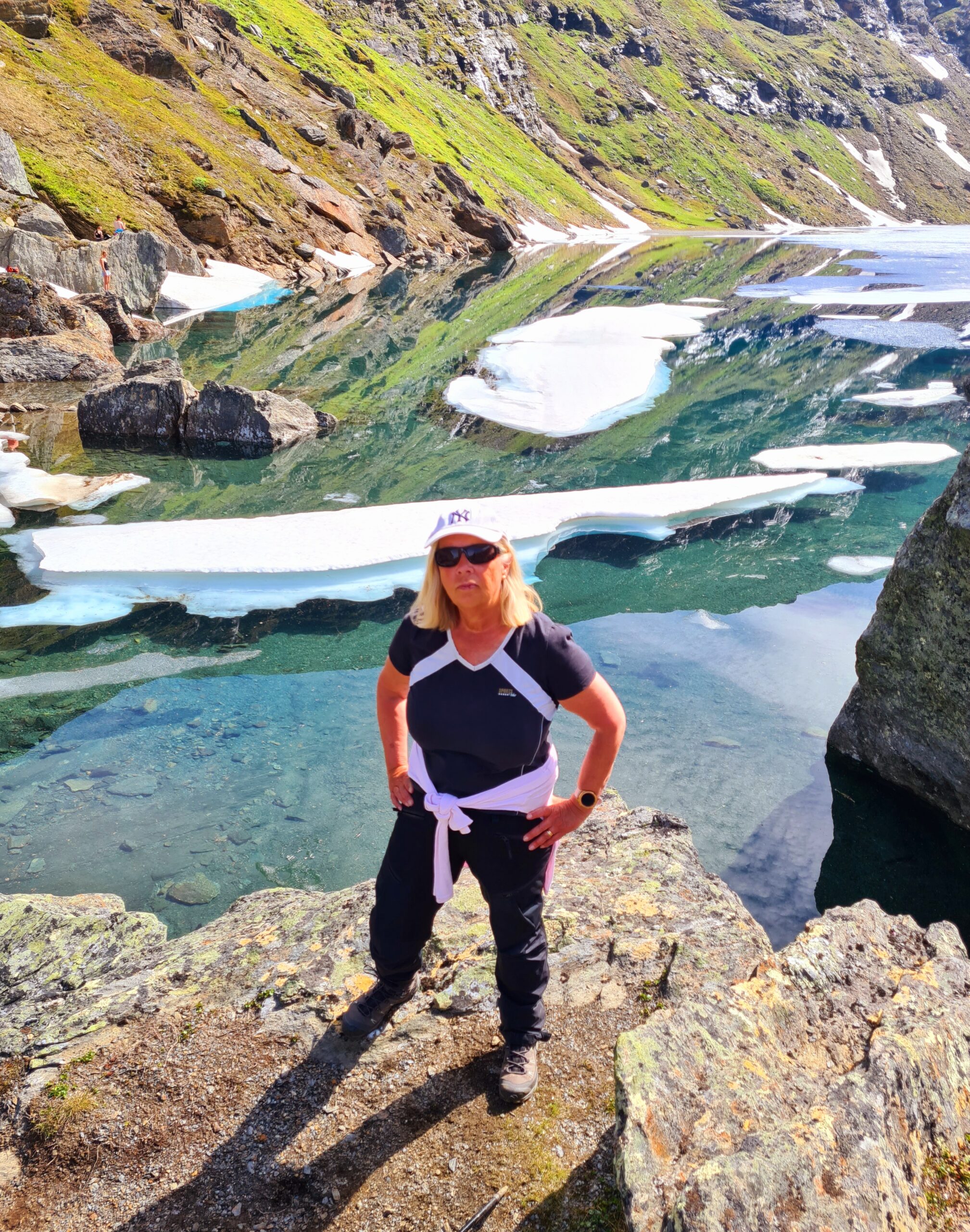 Ganska varma kommer vi fram till den glimrande lilla sjön och även om vi trott att all is ska vara borta ligger det en del kvar fortfarande. Under de timmar vi stannar kan vi följa hur isen smälter allt mer, men vi är nog några dagar för tidigt för få se hela sjön i den klarblå färg som vi önskat.