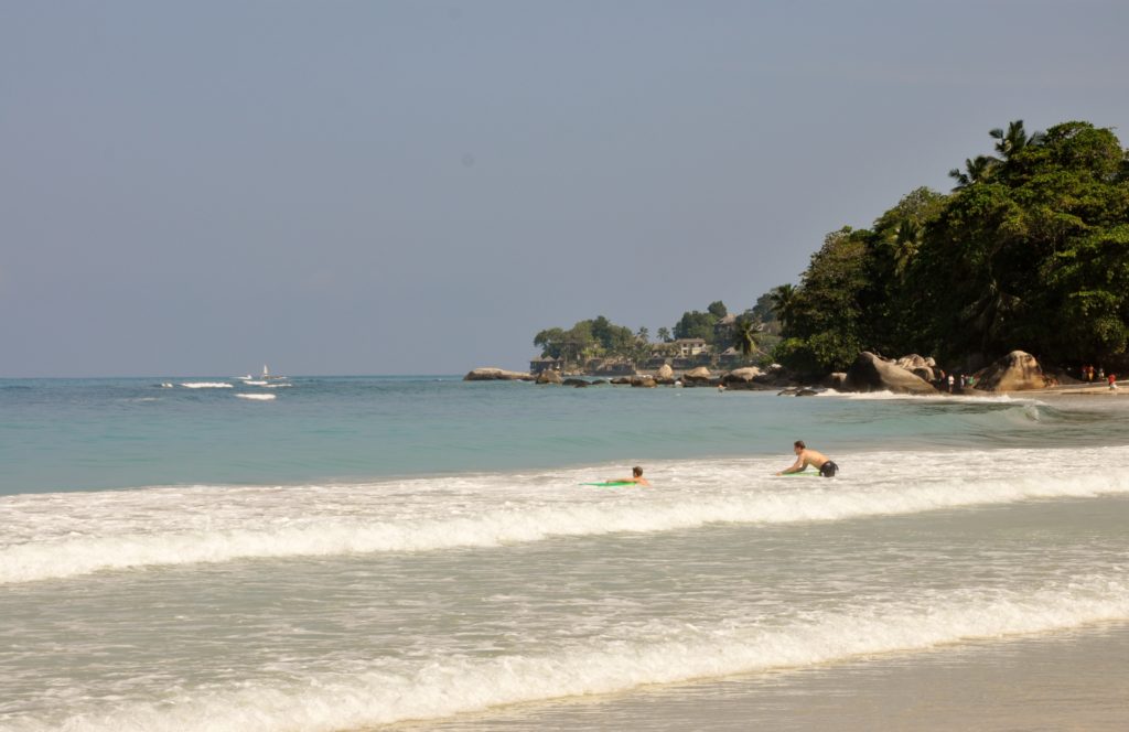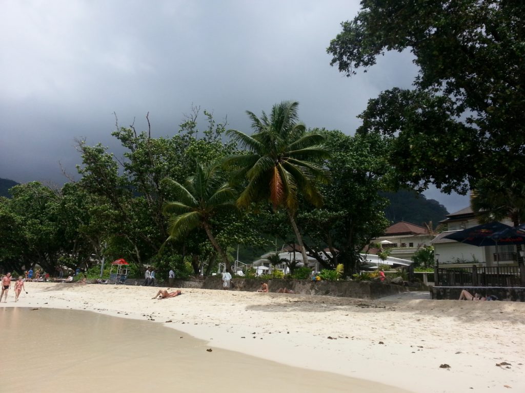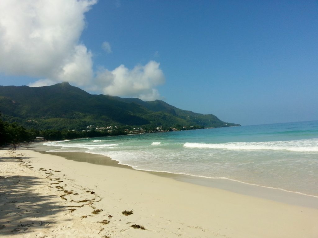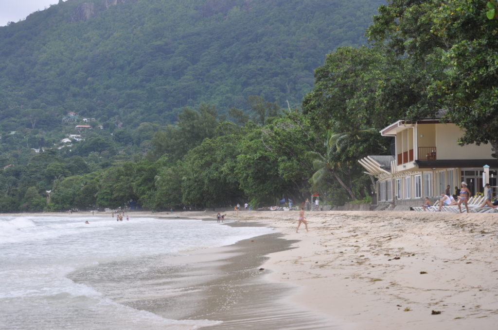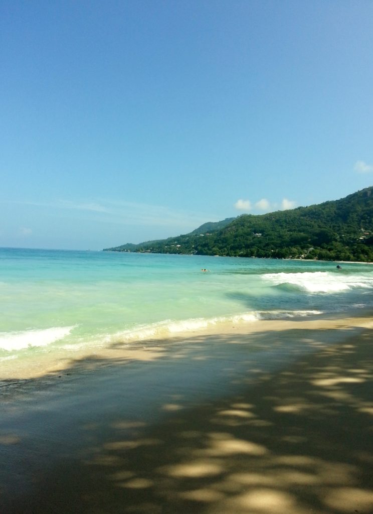 Vår strand i Beau Vallon är en av Seychellernas mest kända och omtyckta stränder och ligger på nordvästra delen av huvudön Mahé. Det är en lång, bred sandstrand med mjuk, ljus sand och lugnt, klart vatten, den är både lättillgänglig och populär både bland lokalbor och oss besökare. Till skillnad från många mer avskilda stränder på Seychellerna har Beau Vallon en livligare atmosfär, men utan att kännas stressig eller överexploaterad. Här har vi gott om egen plats, men jag upplever att det ofta går lite höga vågor för att vara den perfekta badplatsen.