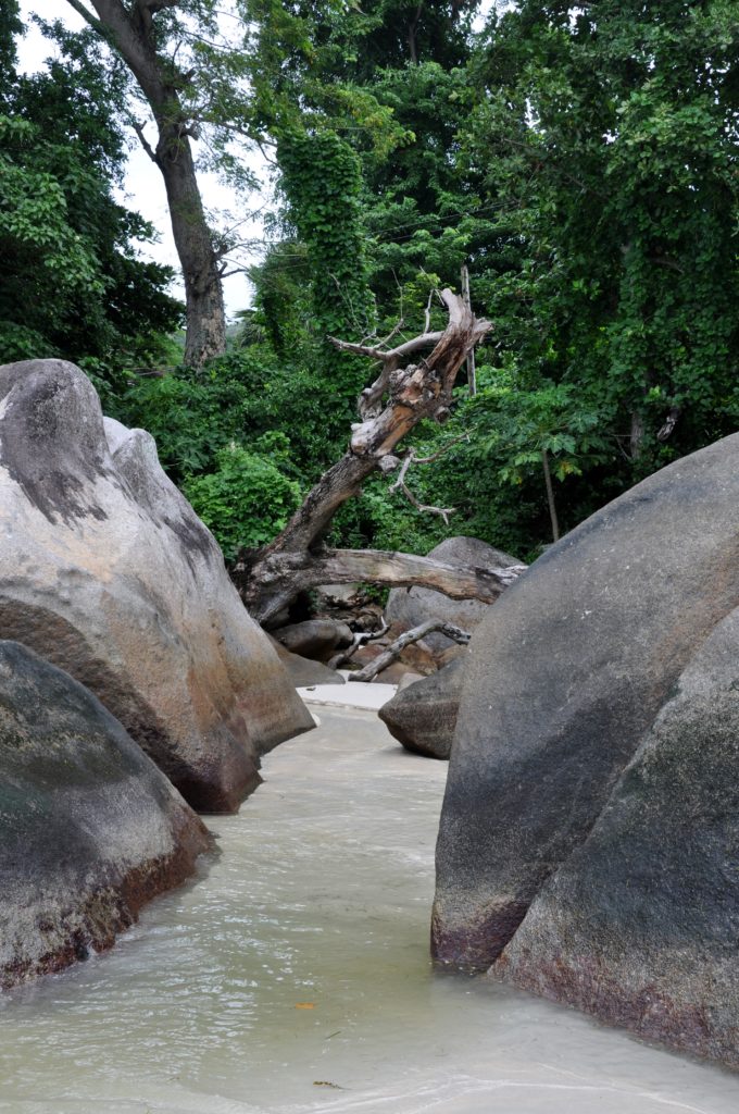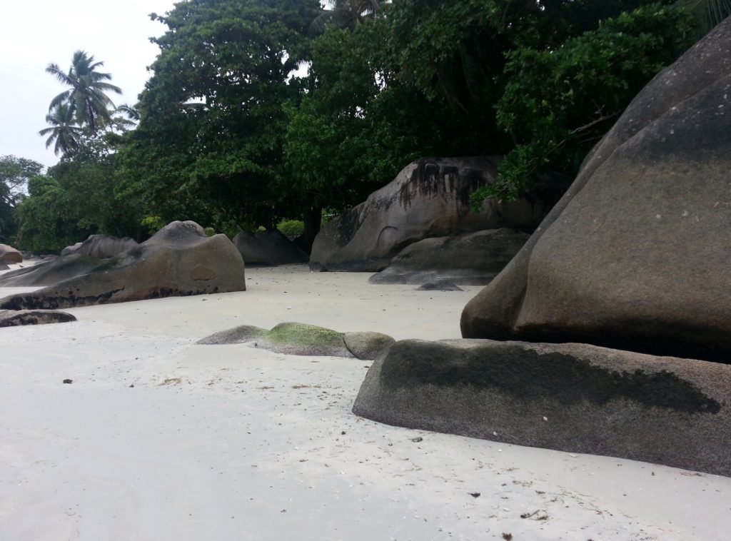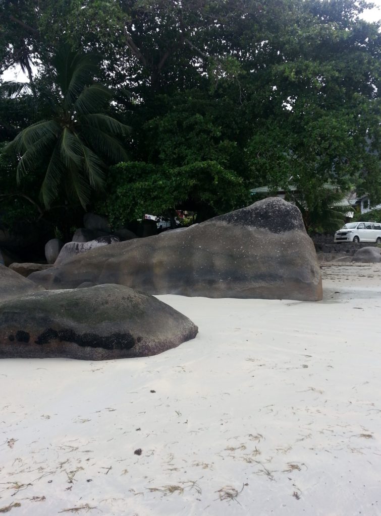 De karakteristiska stenformationerna som Seychellerna är kända för finns även på Mahé, även om de inte är lika spektakulära som till exempel på ön La Digue. Under hela vår semester stannar vi kvar på Mahé, främst på grund av det ostadiga vädret. Egentligen var planen att besöka några av grannöarna, men väderförhållandena blir tyvärr inte tillräckligt bra för det.