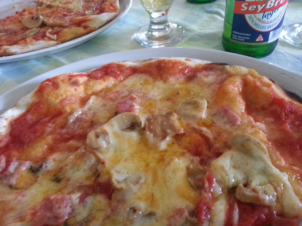 Världens bästa pizzeria vågar jag nog påstå när vi hittar pizzerian som ligger på stranden och serverar de mest fantastiska pizzor som vi någonsin ätit Den vita mjuka sanden pryder golvet på denna enkla men omåttligt populära pizzeria.