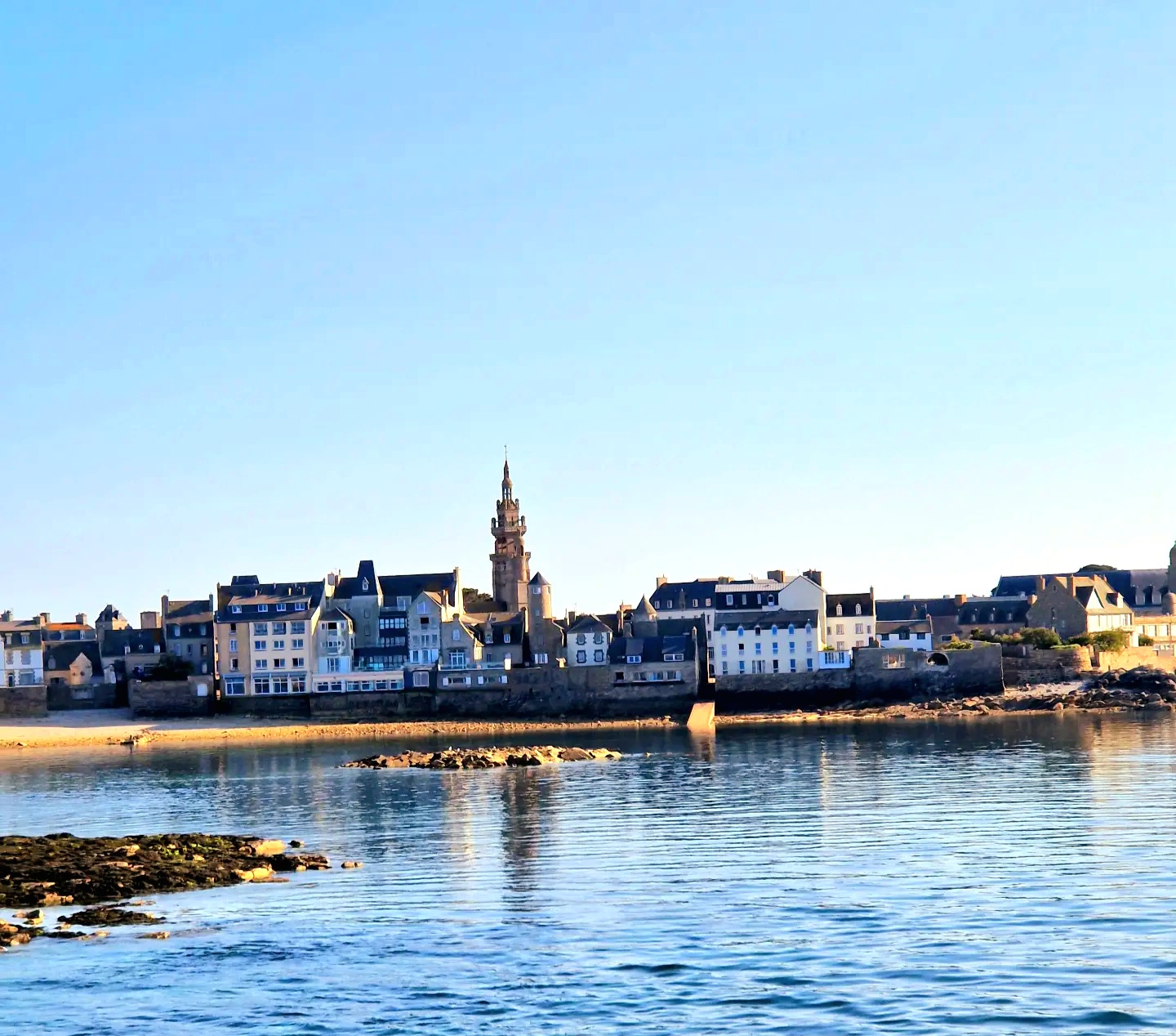 Självklart vill vi uppleva mycket av kustremsan. Jag hittar en ort som verkar intressant, Roscoff. Här finns en fin mindre stadskärna och det ligger strandnära.