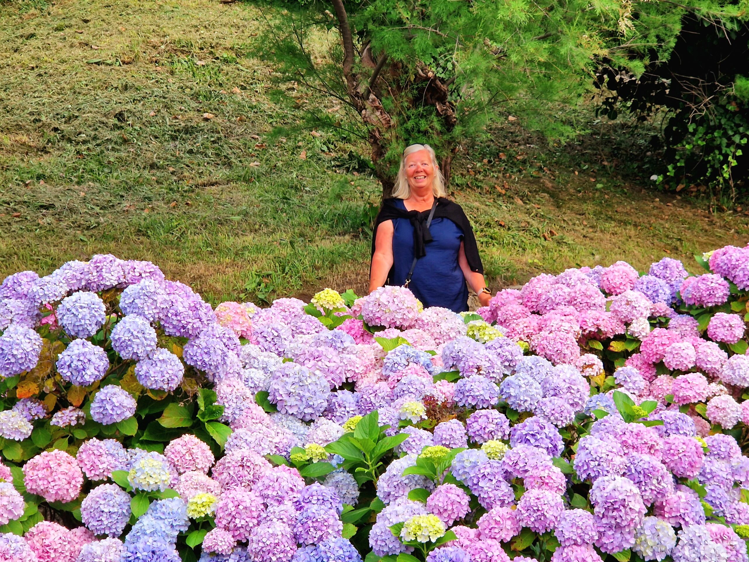 Hortensia i mängder klättrar utmed sluttningarna och det är svårt att se sig mätt på den fantastiska färgpaletten.