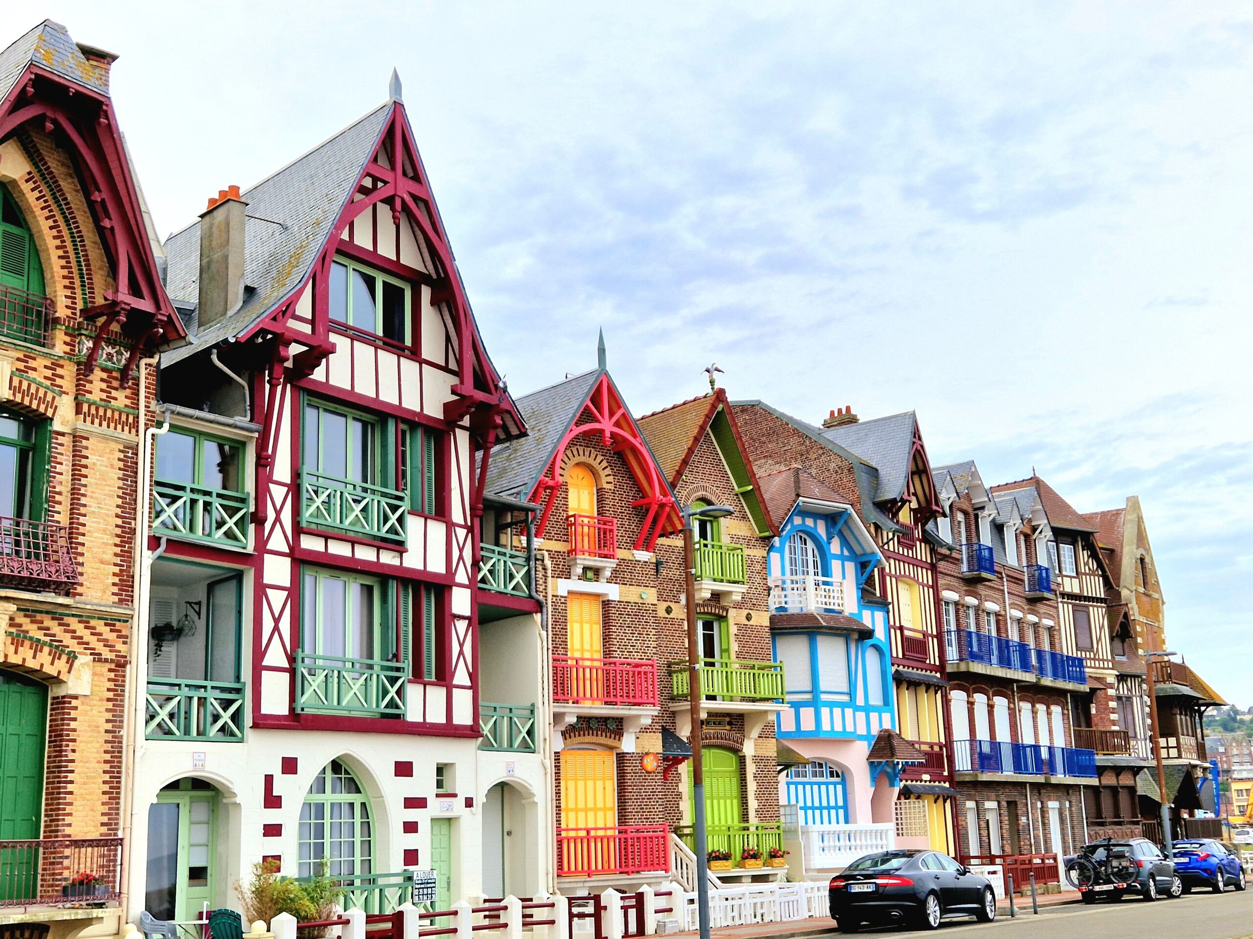 Mers les Bains i Normandie är något alldeles extra när det gäller vackra hus. Husen är byggda under den så kallade Belle Époque – eran. En tid i Frankrike av välstånd, fred, och ekonomiskt tillväxt samt optimism. Husen som ligger vid den trevliga strandpromenaden i orten har en underbar färgpalett och fantasifulla utsmyckningar.