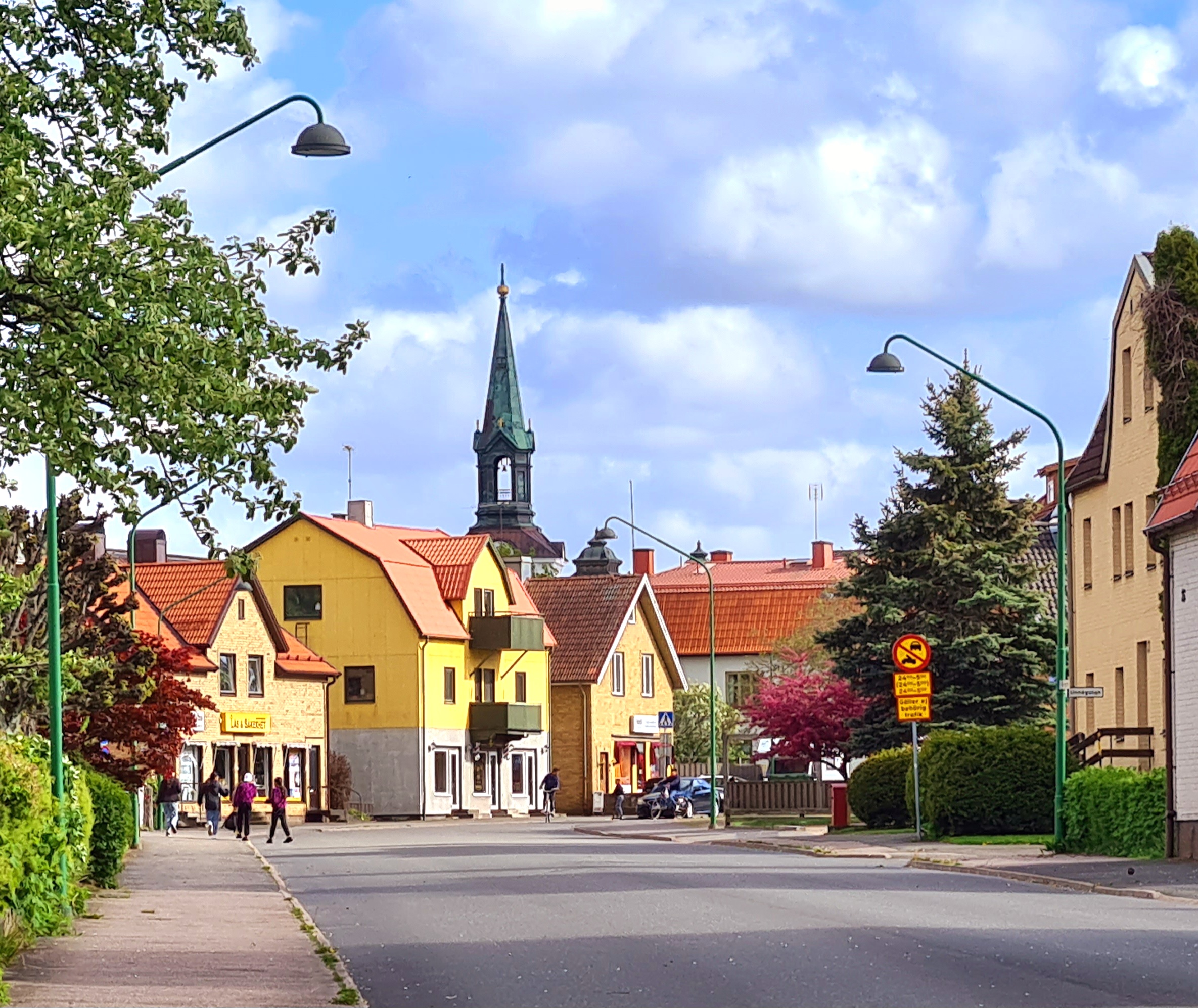 För oss blir det ett besök vid kommunhuset som är placerat mitt i centrum. Älmhult har ett trevligt centrum med flera butiker och det känns större än vi förväntat oss.