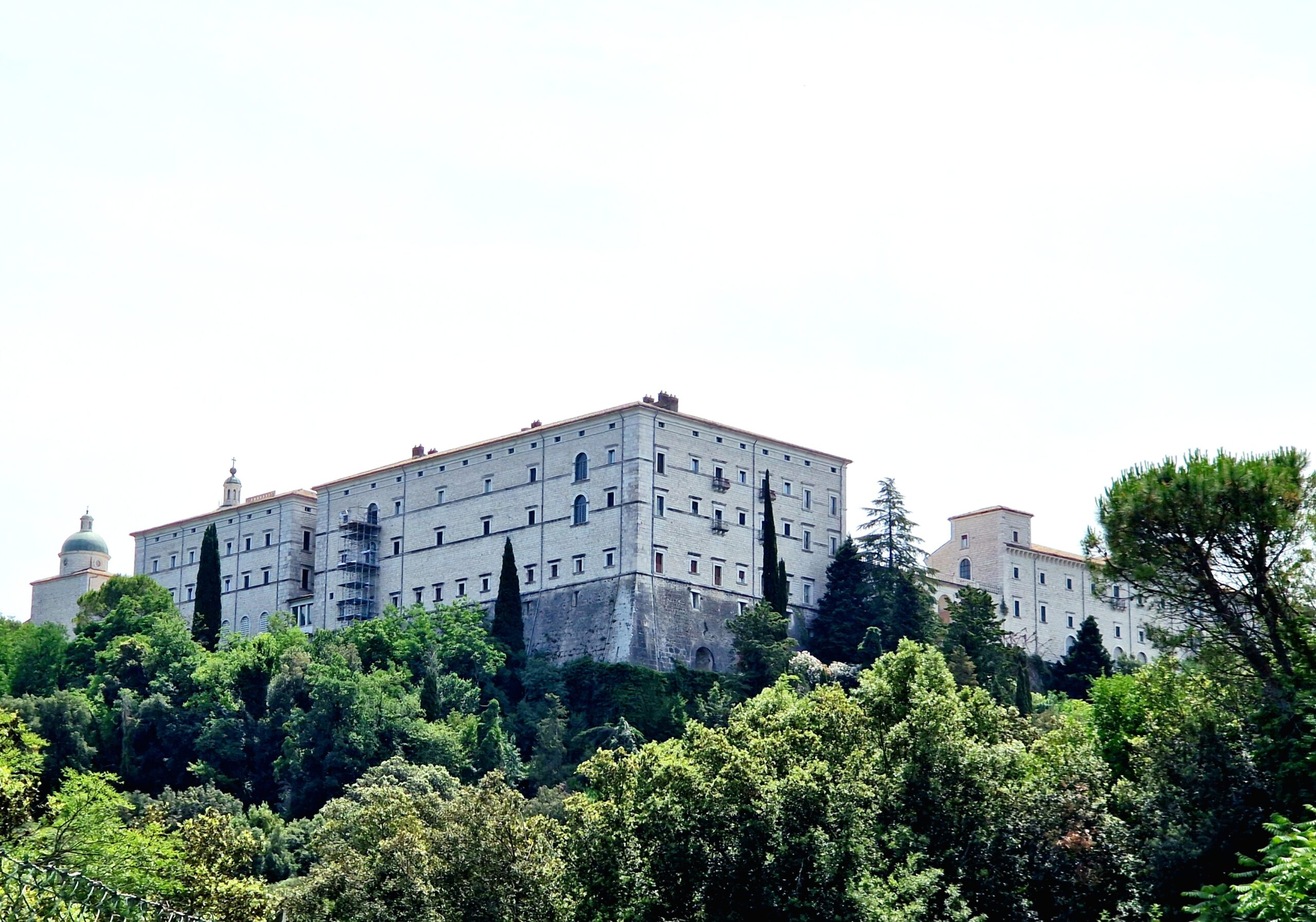 Efter att ha övernattat i den gamla före detta svenskbyn ”La Serra” ute vid havet är vi morgonen därpå åter på plats för att göra ett besök på klostret. Inte långt från orten Baia Domizia där La Serra har sin semesteranläggning ligger staden Cassino. Härifrån tar vi oss upp på berget med bil. Vägen slingrar sig med ganska snäva kurvor men inte av den värsta sorten direkt. Ganska snart når vi den stora parkeringsplatsen som rymmer många bilar, samt turistbussar. Vi är bland de första turisterna här idag och det är lätt att få en parkeringsplats nära klostrets ingång.
