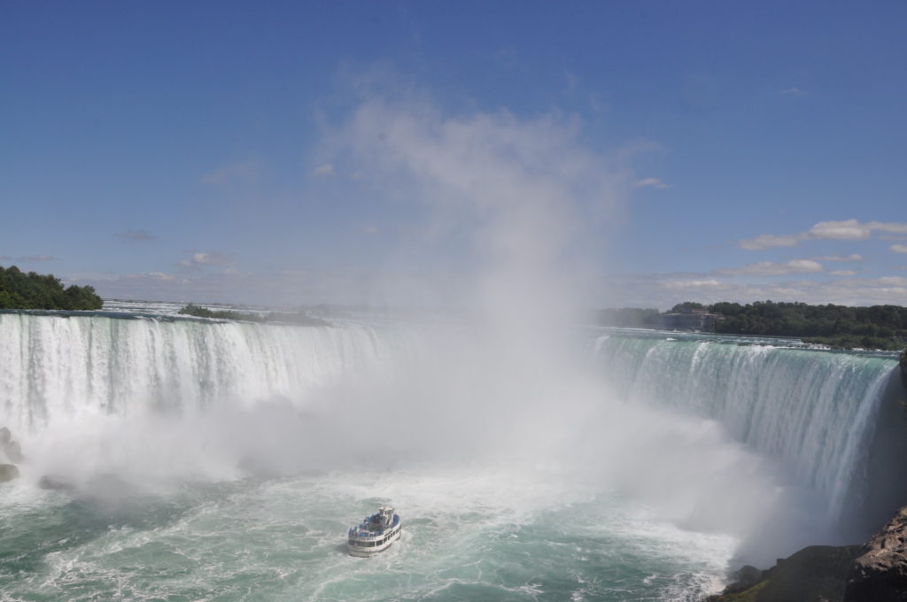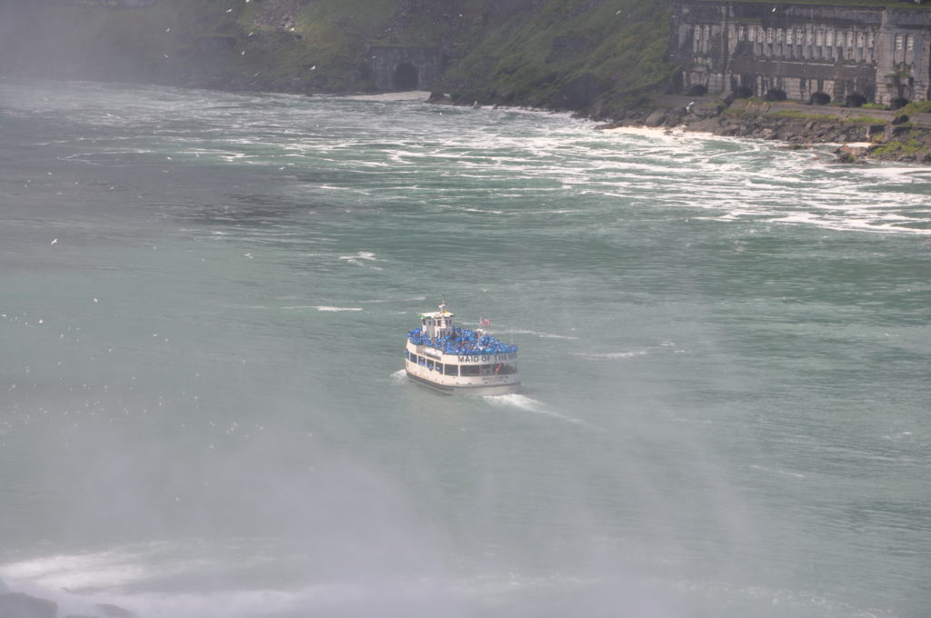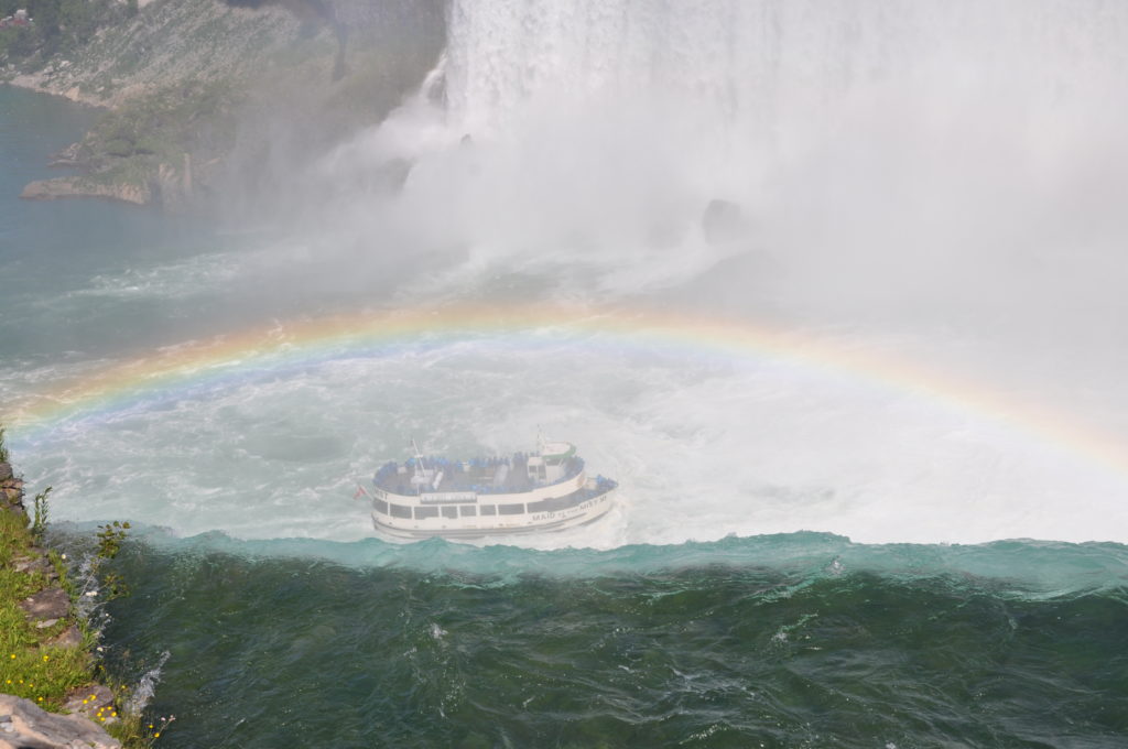 På den kanadensiska sidan passerar turbåtarna rakt framför fallen och in i flodens Horseshoe Basin, vid de dramatiska Canadian Falls.