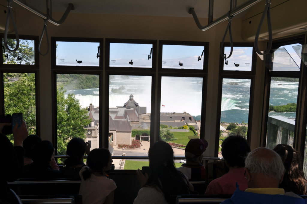Från hotell- och turistområdet uppe vid Fallsview Boulevard där vi bor och ner till området vid fallen, precis vid Table Rock och utsiktsplatserna mot Horseshoe Falls finns en liten bergbana. Turen är kort, men väldigt smidig, särskilt för oss som bor på hotell ovanför och vill slippa gå den branta backen ner.