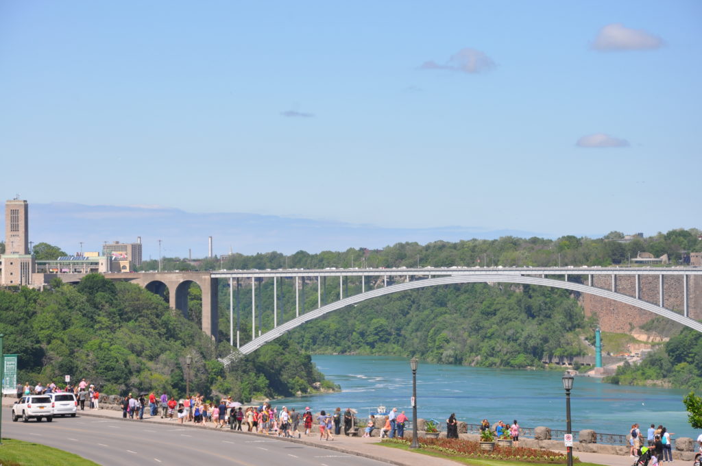 Vi promenerar runt på den amerikanska sidan och äter lunch innan vi kör över Rainbowbridge där vi snällt får stå i kö nästan en timme för att komma in i Kanada. Det är ganska många bilar som ska över gränsen denna eftermiddag så vill man slippa köerna är det smart att köra över tidigare på förmiddagen. Vi har inga problem med att komma in i Kanada, några frågor om vart vi ska och hur länge vi ska stanna. Vi får en stämpel i passet och vips är vi i ett nytt land.