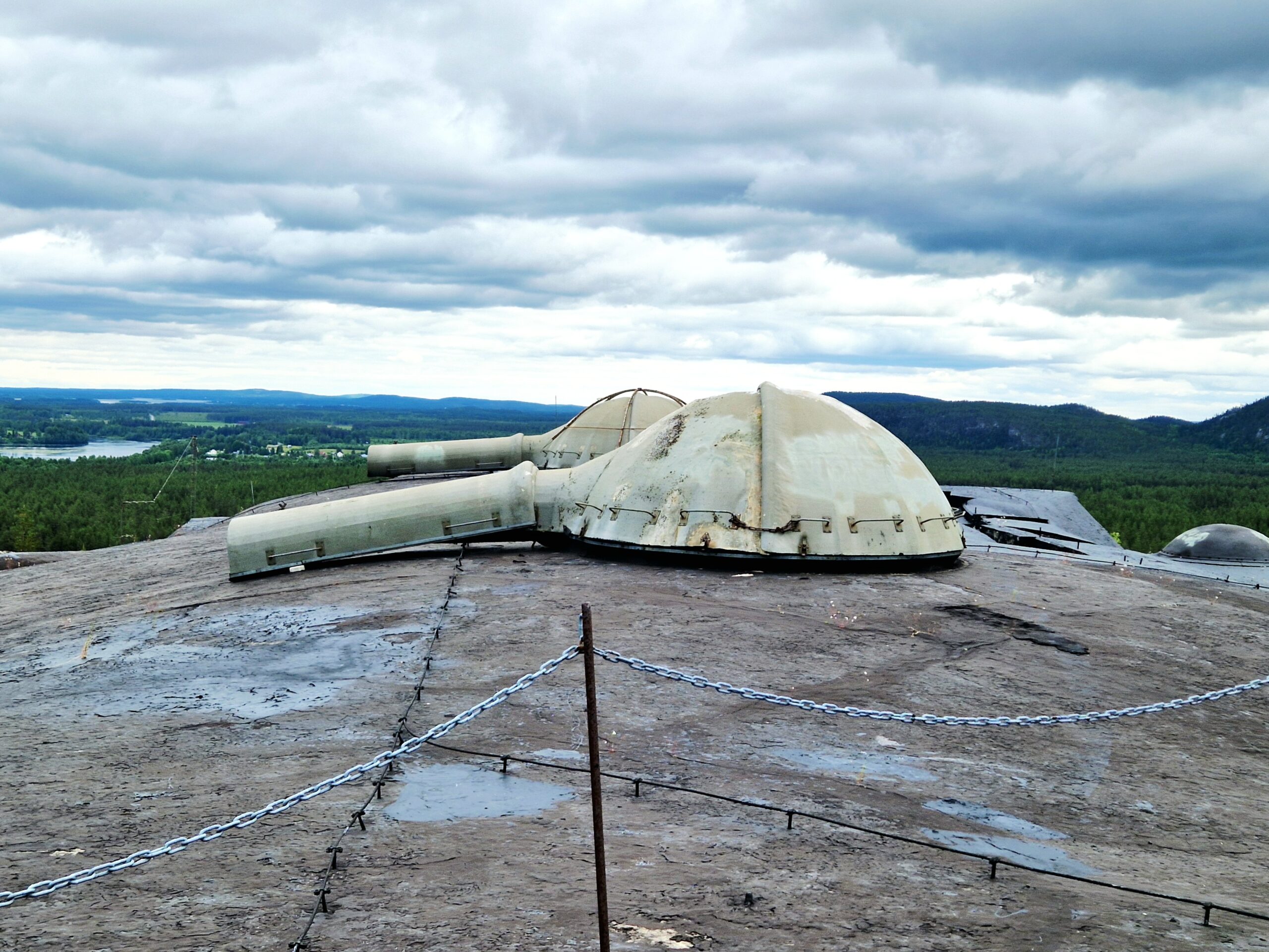 Vår tur i fortet avslutas med en tur upp på taket där vi kan se pansartorn med kanoner. Idag är det mer en utsiktsplats med vyer över Boden.