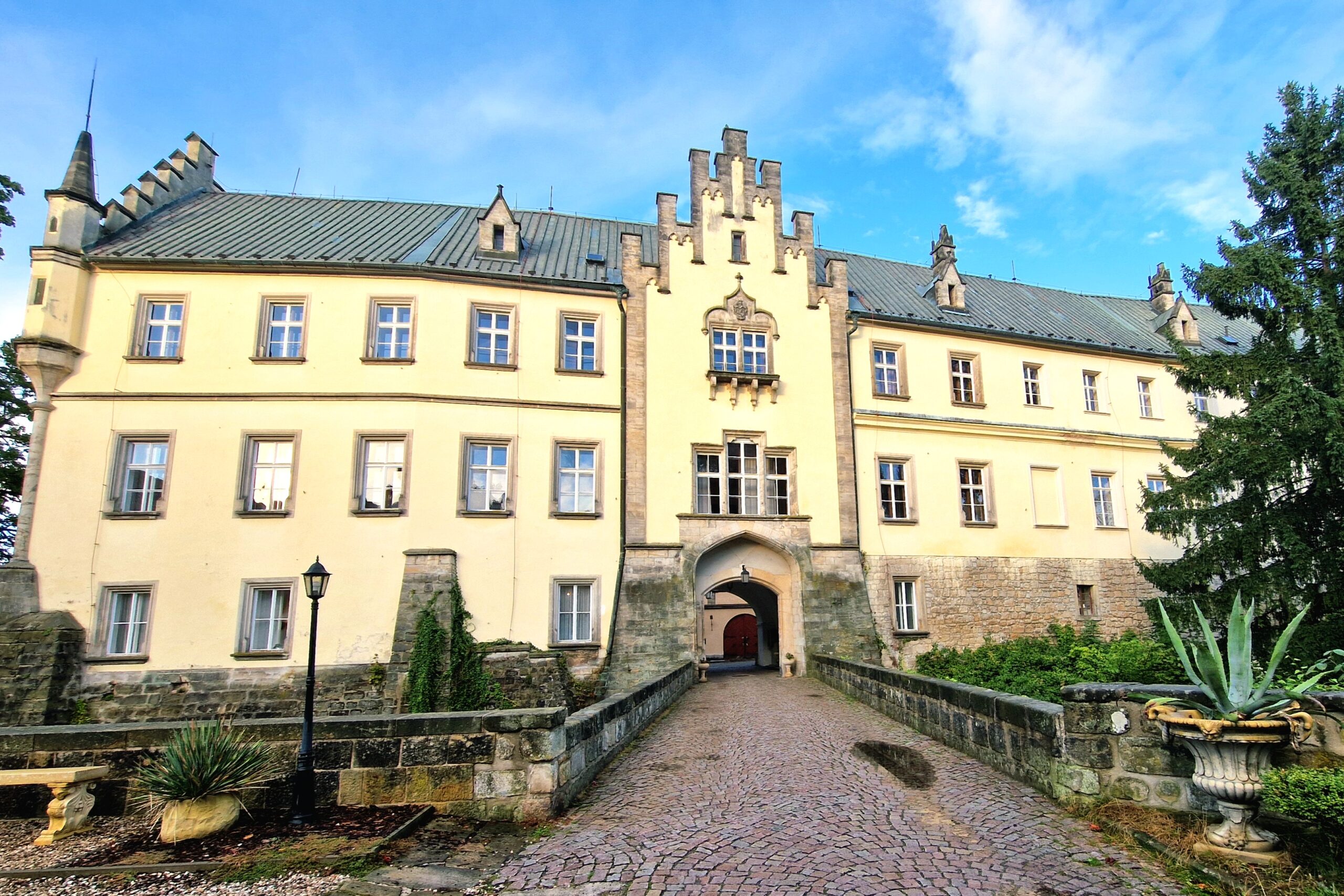 På vår bilresa genom både Polen och Tjeckien är tanken att besöka olika slott och gärna bo på några. I Polen bor vi på ett mindre slott, kanske mer en herrgård. Men jag vill bo på ett riktigt slott och i Tjeckien hittar vi Hrubá Skalá som också passar bra i vår färdriktning söderut.