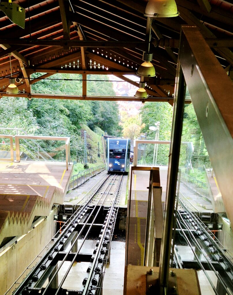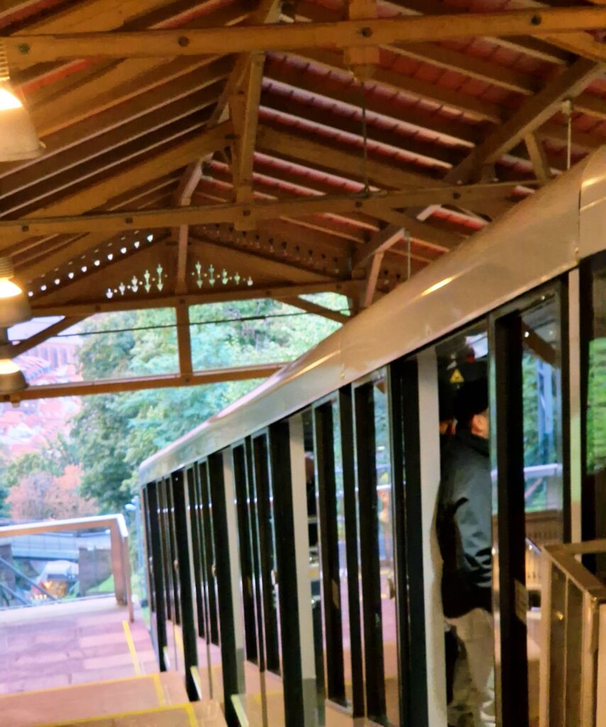 Det är svårt att inte trivas här direkt men vi måste ju ta oss ned på stan så fort som möjligt för att utnyttja tiden vi har innan det blir mörkt. Precis intill hotellet ligger bergbanan och eftersom vi bor på hotellet har vi 50 % rabatt på biljetten för en tur och retur-biljett. Vi betalar 5,50 € istället för 11€.