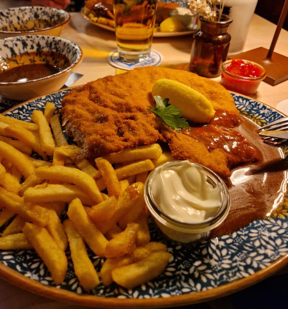 Vi har blivit hungriga och letar efter någonstans att äta. Och visst finns det ett flertal traditionella värdshus som serverar traditionell tysk mat, vi kastar oss in på första bästa som har ett ledigt bord.