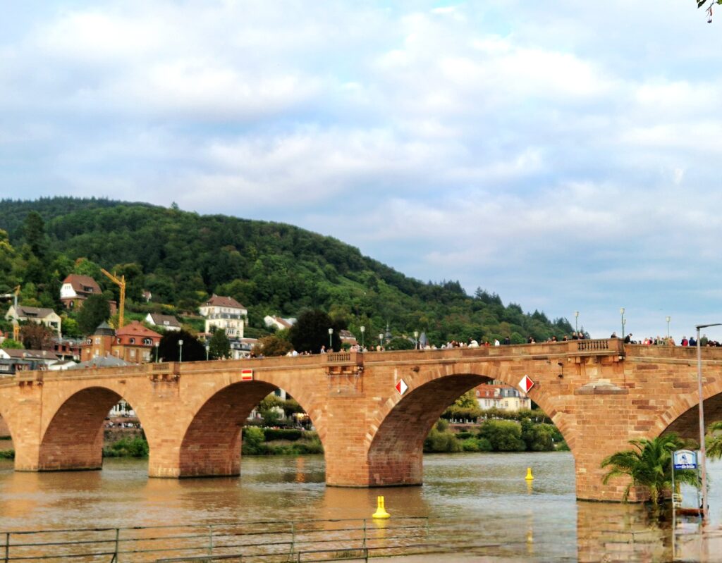 I hjärtat av Heidelberg sträcker sig den vackra Alte Brücke, officiellt kallad Karl-Theodor-Brücke, över floden Neckar. Bron är ett av stadens mest kända landmärken och förbinder den historiska gamla stan med den norra sidan av floden. Den bro som står här idag byggdes mellan 1786 och 1788 av kurfursten Karl Theodor, efter att flera tidigare träbroar förstörts genom århundradena av is, översvämningar och krig. Till skillnad från sina föregångare byggdes den nuvarande bron i sandsten, vilket gav den en mer beständig konstruktion i barockstil.