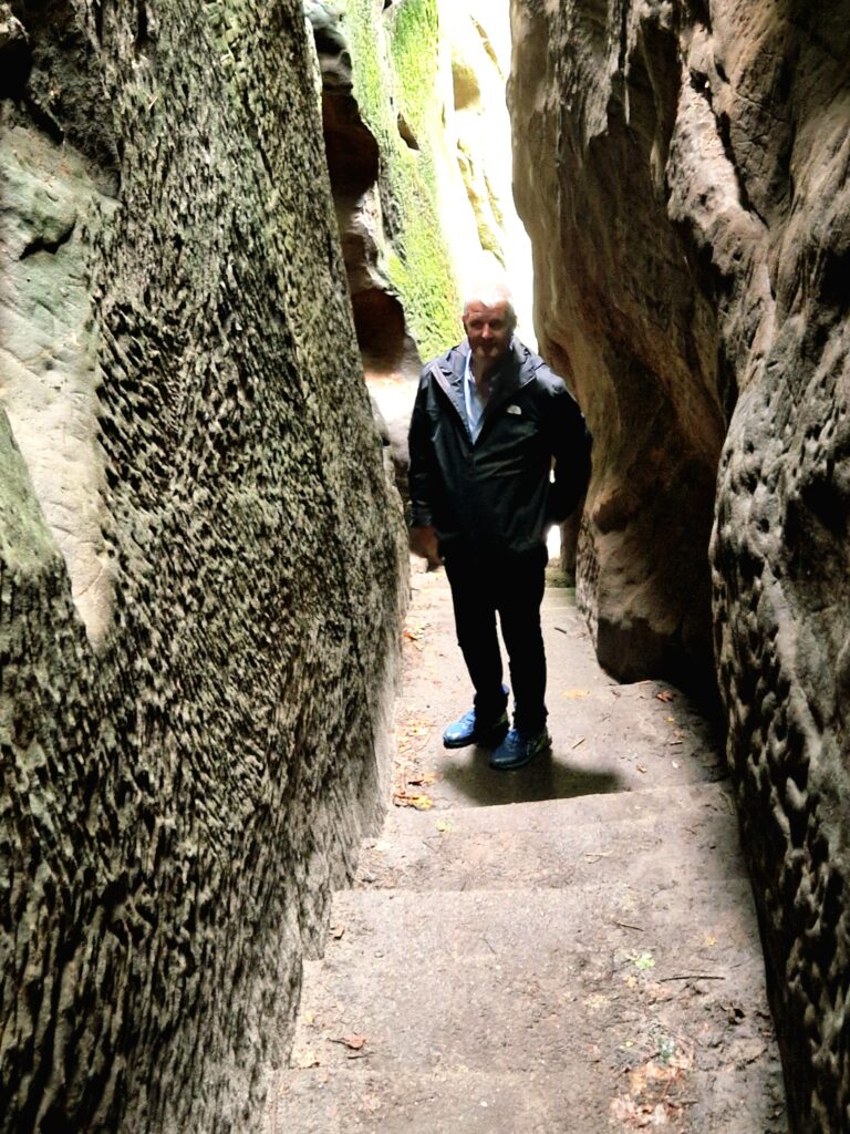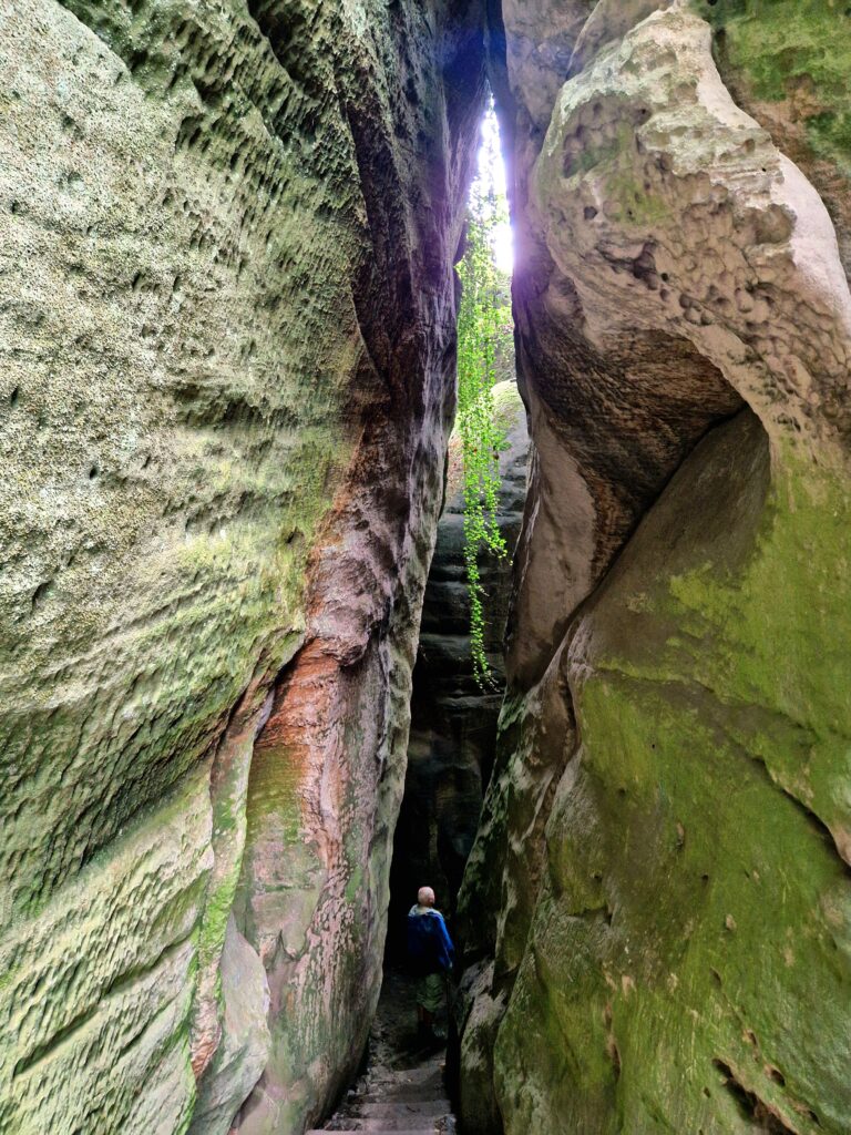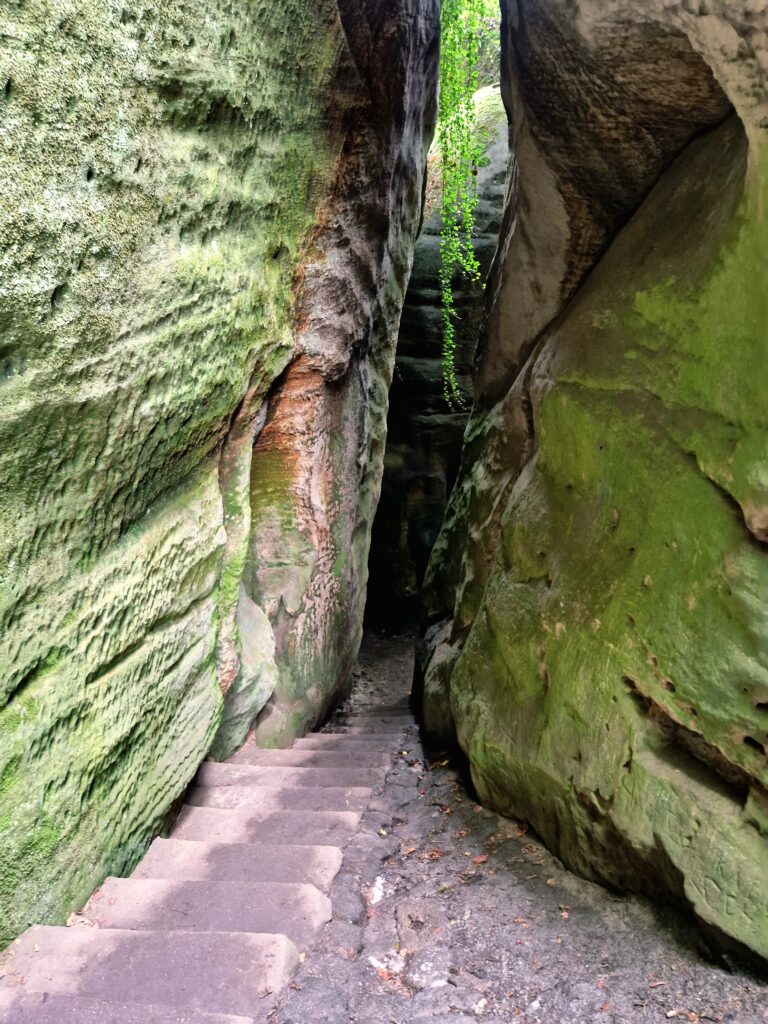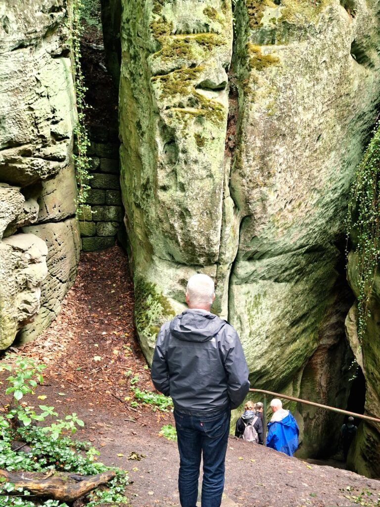Det är en hel del trappor nedåt men samtidigt är det både häftigt och spännande att ta sig in i bland de grottliknande stenblocken. Vi är inte ensamma här men det är absolut ingen trängsel som råder. Kanske beror det på vädret, regnet hänger i luften och vi måste skynda på innan regnet öser ned igen.