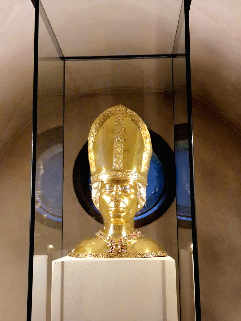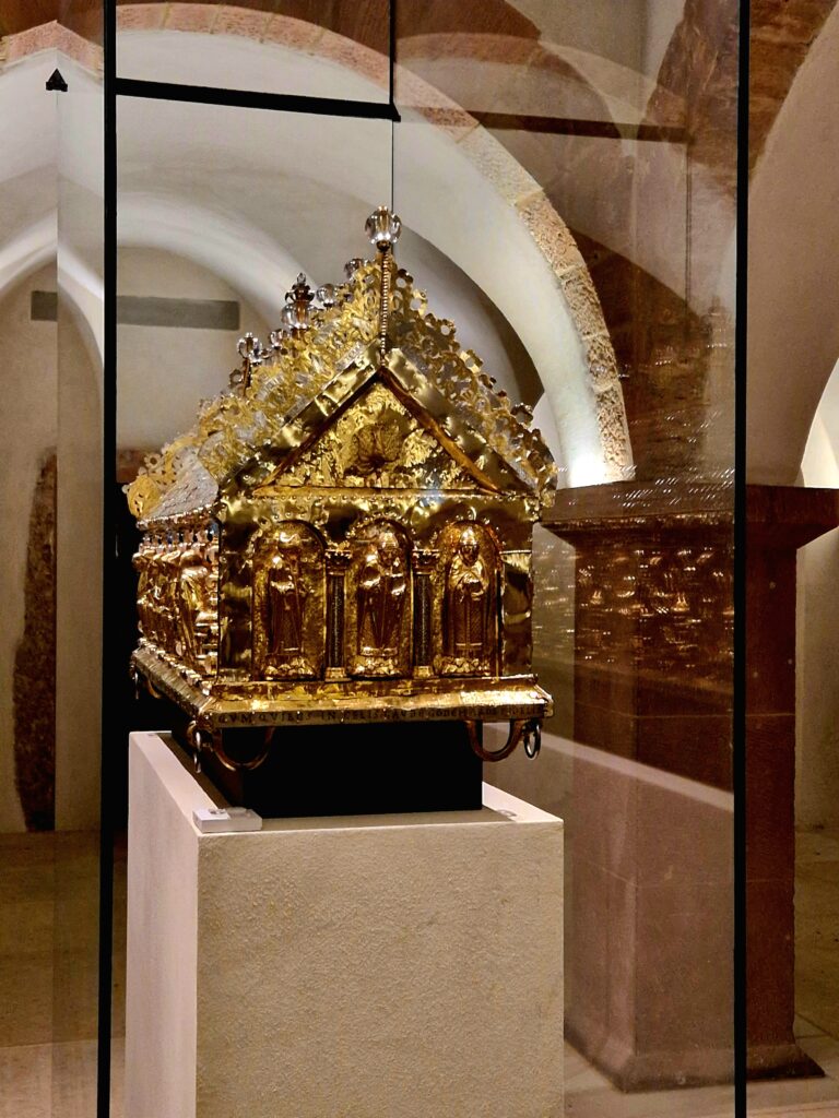 Mariendom i Hildesheim har många andra konstskatter utöver ljuskronan, dörrarna och kolonnen. I glasmontrar i sidoskepp och krypta finns förgyllda föremål som kalkar, monstranser, relikskrin och liturgiska kläder, dekorerade med ädelstenar och emalj. Objekten visar Hildesheims rika konstnärliga tradition och kyrkans makt under medeltiden.