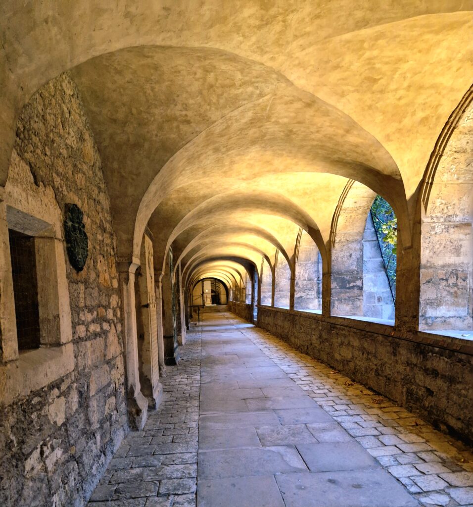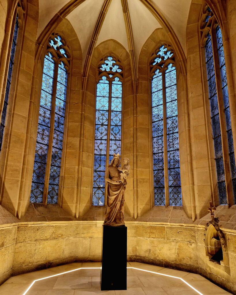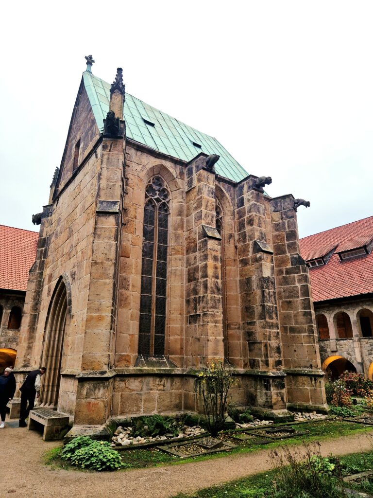 Vi lämnar Mariendom och tar oss ut via en sidodörr till katedralgården eller Domhof. Här står det lilla Michaeliskapellet som är en del av katedralens historiska miljö och används ibland för mindre andakter eller minnesstunder.