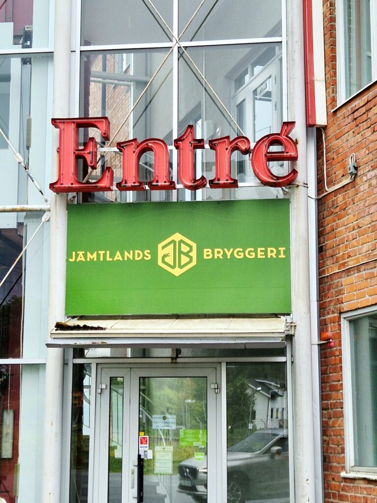 Vid vårt besök i Pilgrimstad hittar vi även Jämtlands Bryggeri, ett lokalt hantverksbryggeri. Kanske lockar det besökare vid bättre väder men vi ser inte till några andra bilar här förutom vår egen.