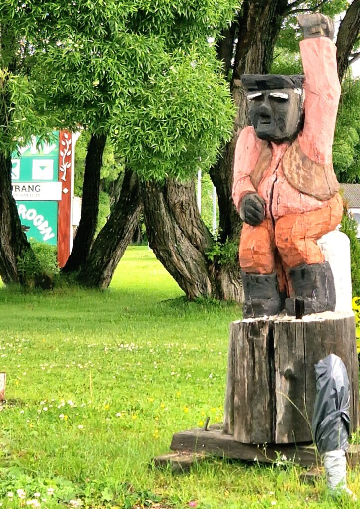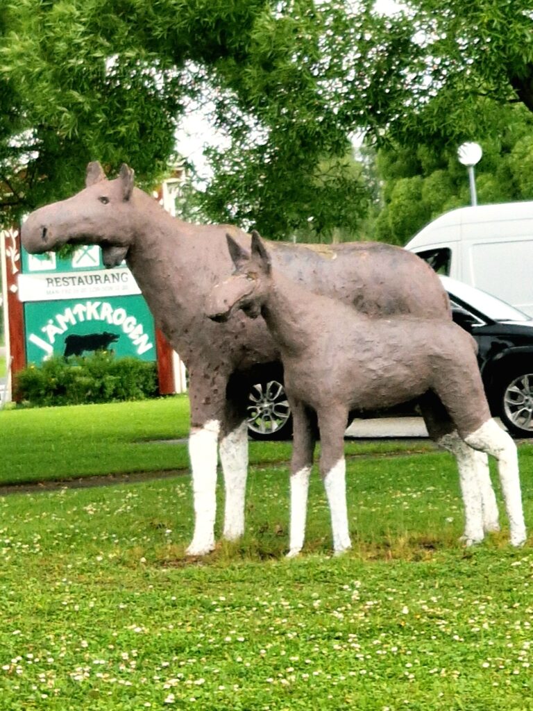 Ett par roliga statyer har man dekorerat med vid parkeringsplatsen i Bräcke.