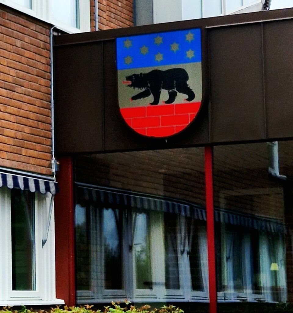 I vanlig ordning när vi besöker kommuner är vi ute efter kommunhuset, men först kör vi runt i regnet i det lilla samhället för att få en hint om hur stämningen är här. Vi ser dock inte så mycket, det är söndagsförmiddag och ingen av invånarna verkar angelägna att ta sig ut i regnet. Såklart står det ett par bilar vid Ica men annars känner vi oss rätt ensamma.