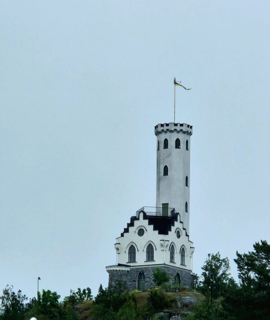 När vi kör runt i Söderhamn lägger vi märke till en annan lite speciell byggnad. Det är Oscarsborg som ligger på Östra berget, en höjd öster om Söderhamns centrum, den byggdes under slutet av 1800‑talet. Det var en del av stadens satsning på offentliga byggnader och rekreationsmiljöer. Tornet är uppkallat efter kung Oscar II och fungerar som utsiktspunkt med en panoramavy över hela staden, Ljusnan, Söderhamnsfjärden och den omgivande skärgården.