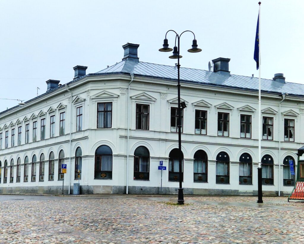 Det nuvarande rådhuset byggdes ursprungligen av tegel redan 1860 och återuppbyggdes i nyrenässansstil efter branden 1876–1878. Under byggnadens långa historia har det rymt både stadens administration, domstol, polis med arrestceller och andra offentliga funktioner. Idag används delar av rådhuset fortfarande för kommunala ändamål, och platsen runt torget fungerar som en naturlig samlingspunkt för såväl lokalbefolkningen som besökare.