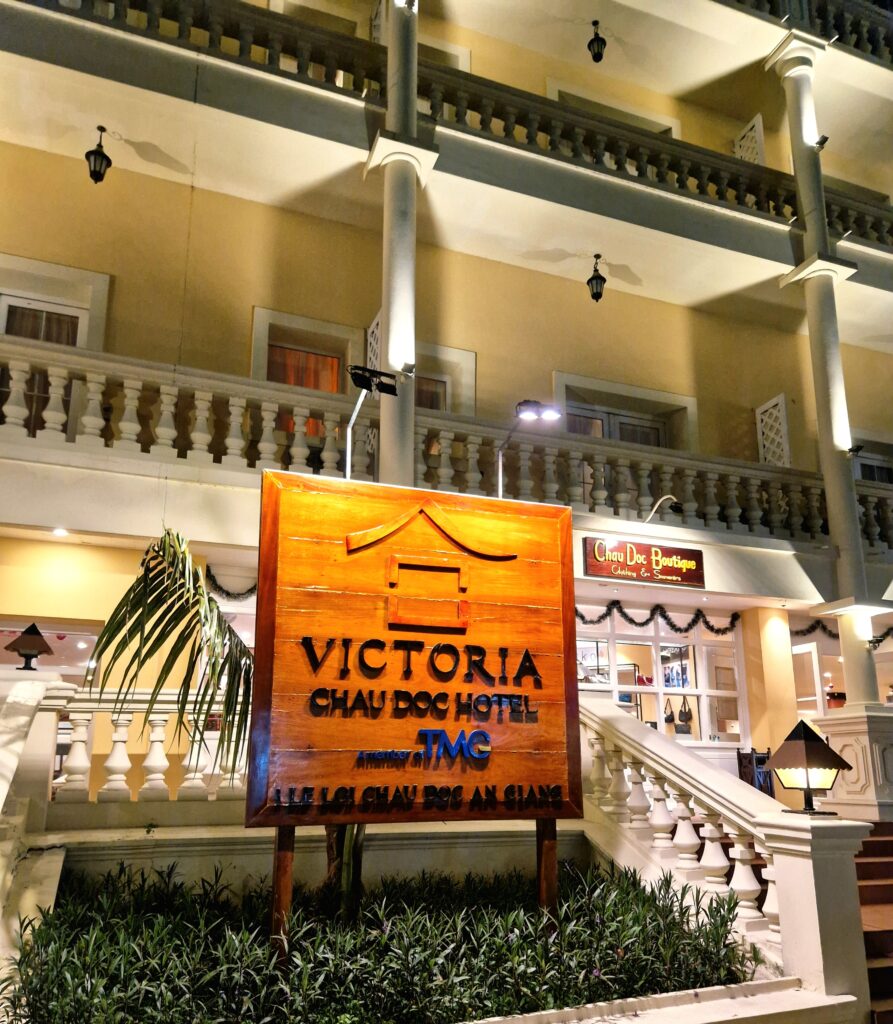 Efter en nära fem timmar lång färd från Phnom Penh når vi äntligen Chau Doc. Smidigt nog kan vi kliva av båten precis vid hotellet som ligger intill Mekongfloden och dessutom visar sig ha ett bra läge i staden.