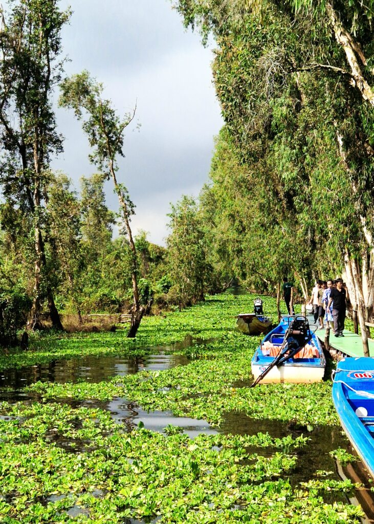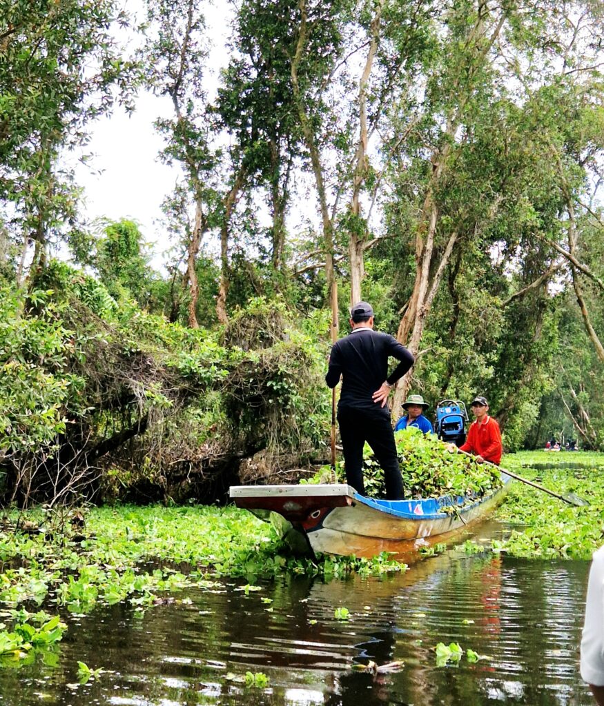 Vi lämnar Chau Doc och färdas cirka tre mil bort för att komma till Tra Su som är ett av Mekongdeltats mest spektakulära naturreservat. Det är berömt för sina stora mangroveträsk och vattennära ekosystem som bildar ett labyrintliknande nätverk av kanaler och småsjöar. Området är särskilt känt för sina flytande träsk och det rika fågellivet. Här kan man bland annat se häger, ibis och olika arter av vattenfåglar, särskilt under häckningssäsongen.