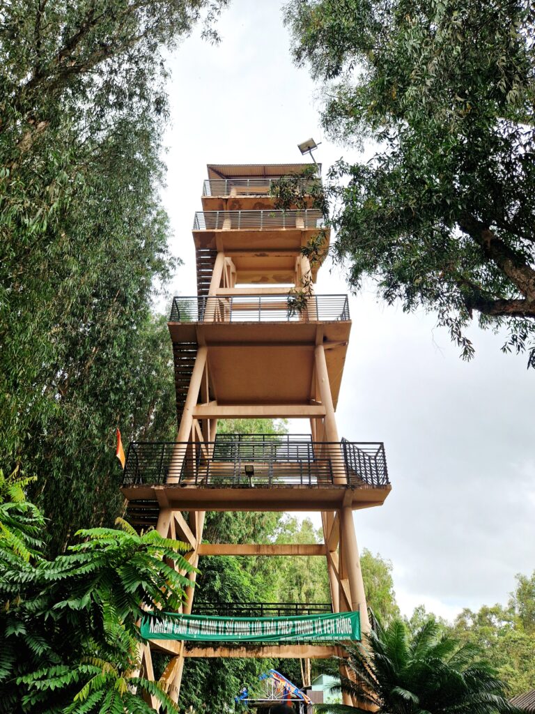 Efter en stund stoppar båten till vid en utsiktsplats. Här står ett högt torn där ett gäng trappor leder oss upp till utsiktstornets topp. På toppen har vi panoramavy över det vidsträckta skogslandskapet nedanför och där vi kan se mängder av melaleucaträd breda ut sig i alla riktningar. Kanske skulle vi haft en kikare med oss för att kunna se mer av fågellivet på ett mer nära håll, eller kunna se ut mot de omgivande byarna som finns ett par kilometer bort.
