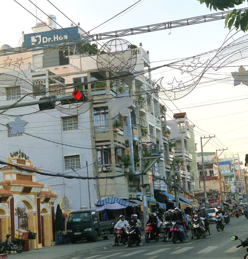 Gatorna i Chau Doc speglar stadens roll som en livlig flodstad i Mekongdeltat. Efter mer än en vecka på resande fot börjar vi långsamt vänja oss vid det ständiga bruset av röster, motorer och tutor som omger oss från morgon till kväll. Trafiken är ett äventyr i sig, där mopeder, cyklar och bilar rör sig på ett kaotiskt sätt, men konstigt nog så fungerar det ändå. Att korsa gatorna kändes till en början lite skrämmande, men ganska snart lärde vi oss att läsa av rytmen och förstå hur det fungerade. Men givetvis är det viktigt att alltid vara vaksam.
