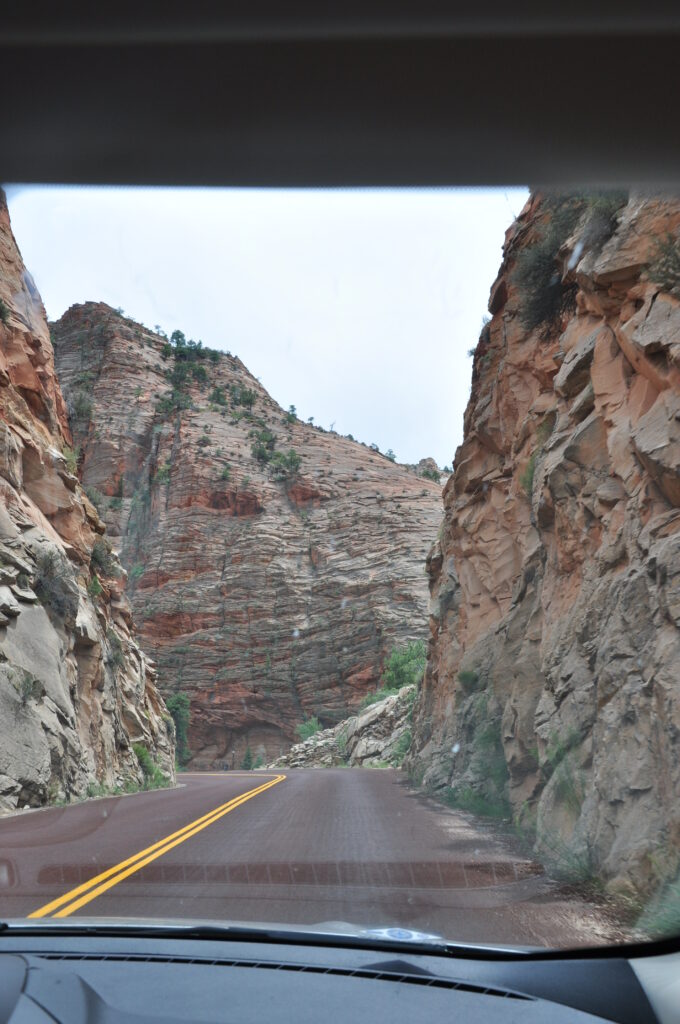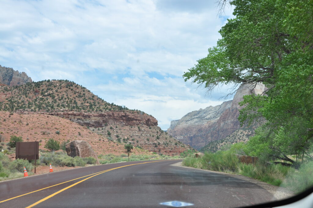 Det är alltså möjligt att köra bil i Zion National Park, men tillgängligheten varierar beroende på område och säsong. Den stora genomfartsvägen, Zion–Mount Carmel Highway (Highway 9), går rakt igenom parken från öst till syd och är öppen för privat trafik året runt. Vägen är i sig en upplevelse, med dramatiska vyer över sandstensklippor, serpentinvägar och den historiska Zion–Mount Carmel-tunneln. Längs vägen finns flera utsiktsplatser där man kan stanna till och njuta av landskapet, samt kortare promenader som till exempel Canyon Overlook Trail.