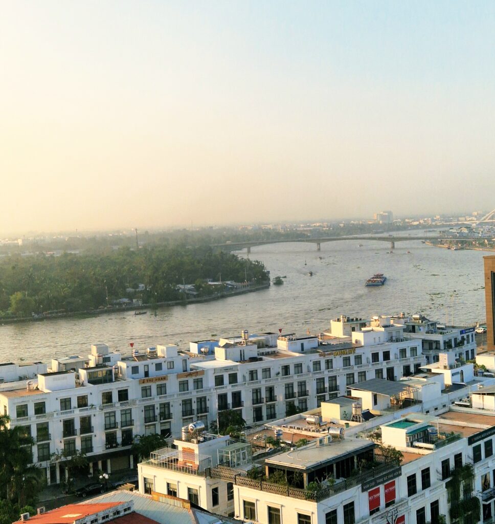 Klockan är inte mer en sex på morgonen när vi tar oss upp till hotellets frukostmatsal med fin utsikt över floden och staden Can Tho. Vi har flera aktiviteter på schemat i dag, så det gäller att ta vara på varenda minut. Även om morgnarna ibland är stressiga försöker vi ändå sakta ner, stanna upp och ta in alla intryck.