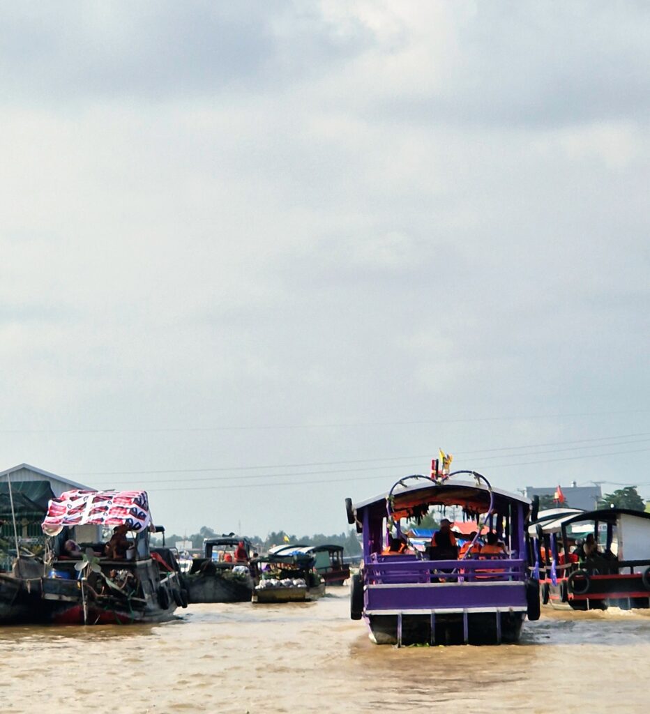Mekongdeltat är livligt och här i Can Tho är det många båtar som tar sig bort mot den flytande marknaden. I dag har de flytande marknaderna i Mekongdeltat, som Cai Rang i Can Tho, en annan betydelse än de hade tidigare. Förr var de helt centrala för handel och försörjning, eftersom floderna fungerade som huvudleder och marknaderna var naturliga mötesplatser för bönder och handlare. Med utbyggnaden av vägnät, broar och moderna transporter har mycket av den dagliga handeln flyttat i land, vilket har minskat marknadernas ekonomiska betydelse.