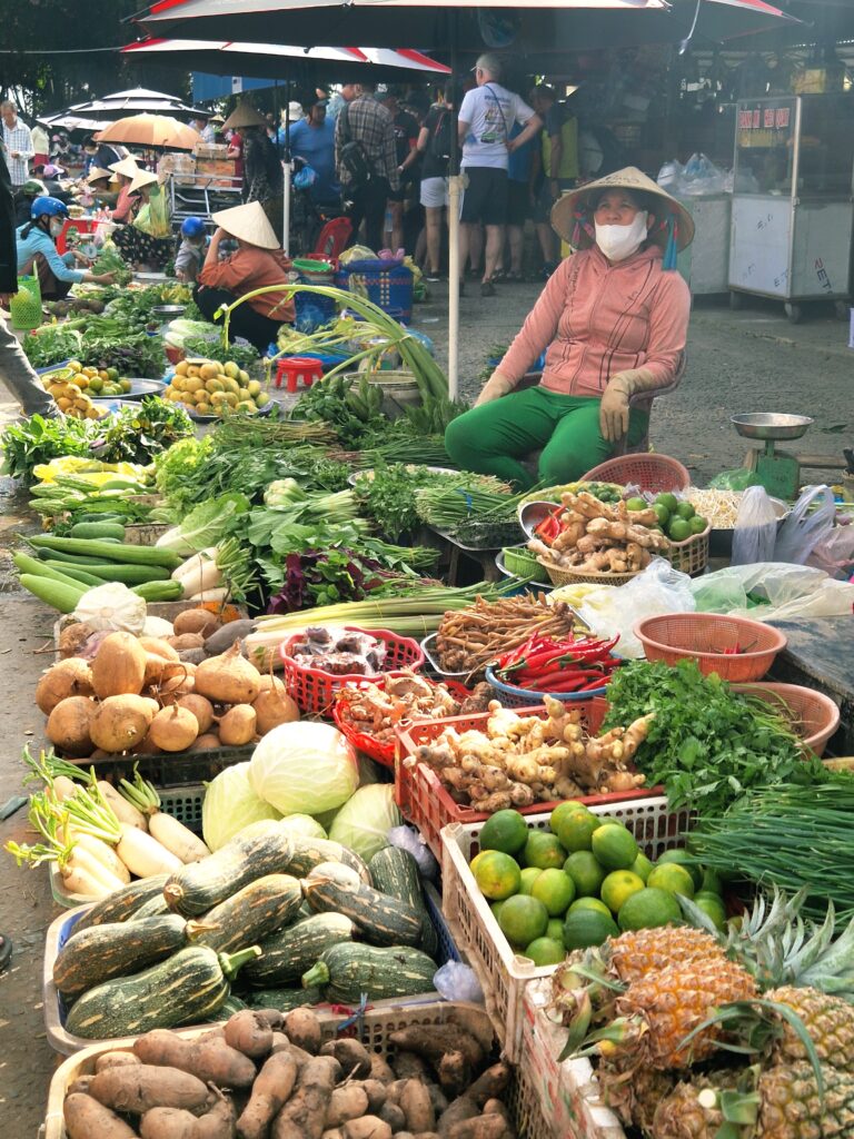 Efter någon timme ute på den flytande marknaderna känns det som vi har sett klart. Nu är det dags att ta sig i land och besöka en traditionell marknad och som passande nog ligger i anslutning till Cai Rang.