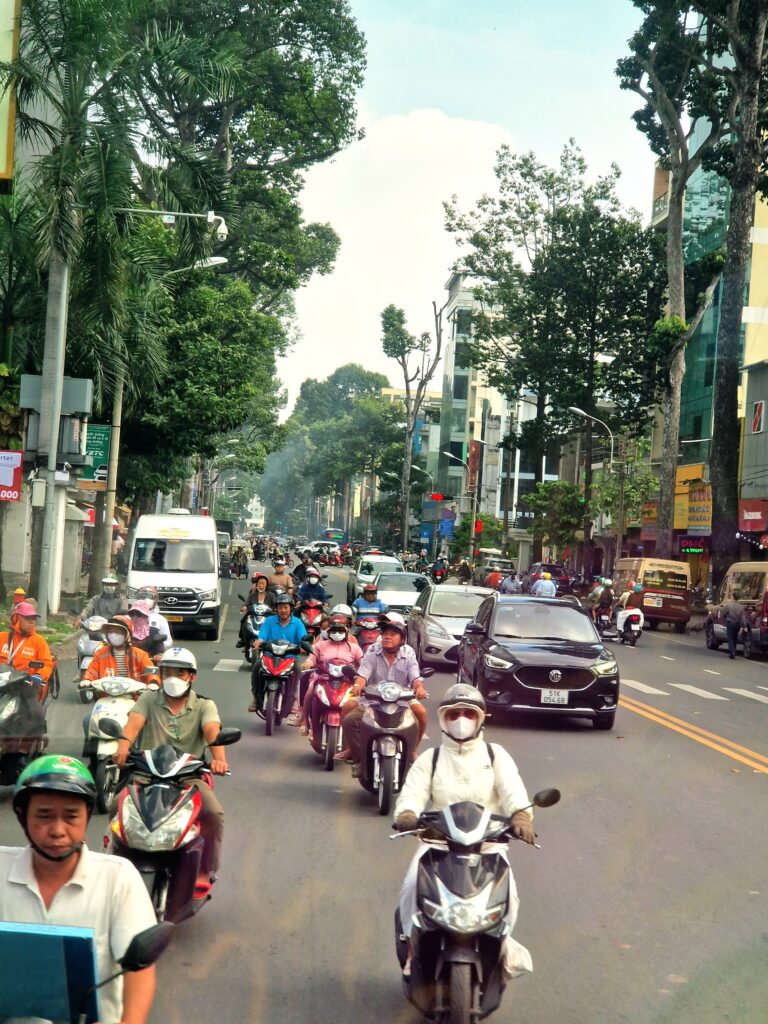 Vår resa i Sydostasien avslutas med ett par dagar i Ho Chi Minh-staden i Vietnam. Redan när vi anländer med buss känner vi av den puls som råder här. Trots att vi har rest åtskilliga mil med buss i Asien finns det ingenting som slår den trafik som finns här. Motorcyklar och mopeder i tusentals trängs på gatorna som till en början känns som ett totalt virrvarr men snart övergår i ett organiserat kaos. Ändå, mitt i all denna livlighet, är det svårt att inte ryckas med och låta sig charmas av denna fascinerande stad.