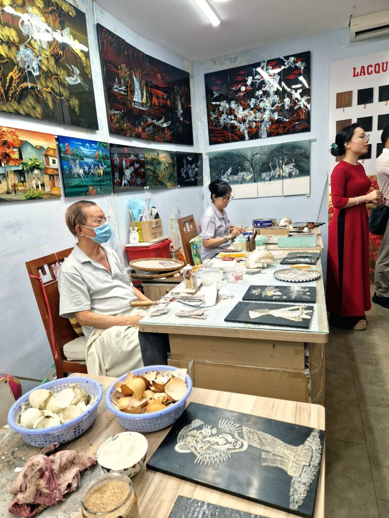 Vi fick följa tillverkningen från start till färdig produkt och blev mäkta imponerade över de vackra tavlorna och några andra souvenirer. Även om priserna var ganska höga, motsvarade kvaliteten förmodligen kostnaden, och det var intressant att se hantverket på så nära håll.