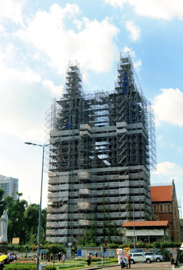 Katedralen byggdes mellan 1877 och 1883 under den franska kolonialtiden och är ett tydligt exempel på fransk neoromansk arkitektur i Vietnam. Den är byggd helt i tegel och stenar importerade från Frankrike och pryds av två höga tvillingtorn som sträcker sig 58 meter upp i luften.