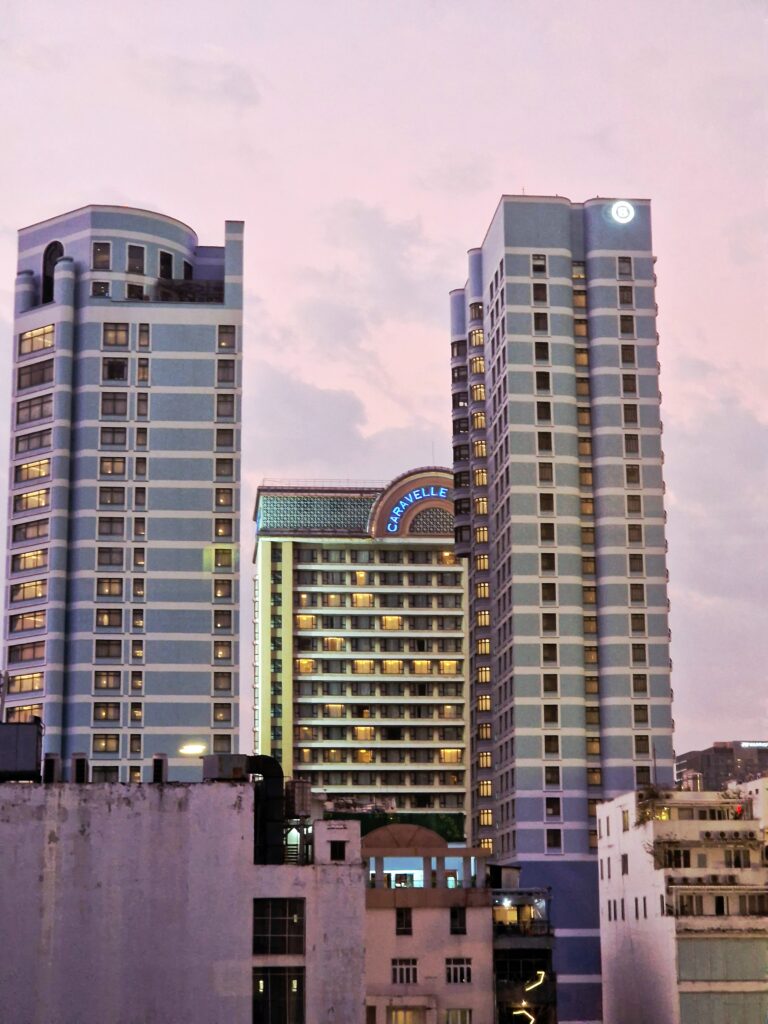 Från takterrassen på Hotel Grand Saigon breder staden ut sig på ett sätt som känns både nära och levande. Det är ingen svindlande höjd, men just därför blir utsikten mer på riktigt. Visst är det häftigt att kanske åka upp på våning 68 eller ännu högre men då brukar jag få en slags overklighetskänsla över vyerna som man möts av.