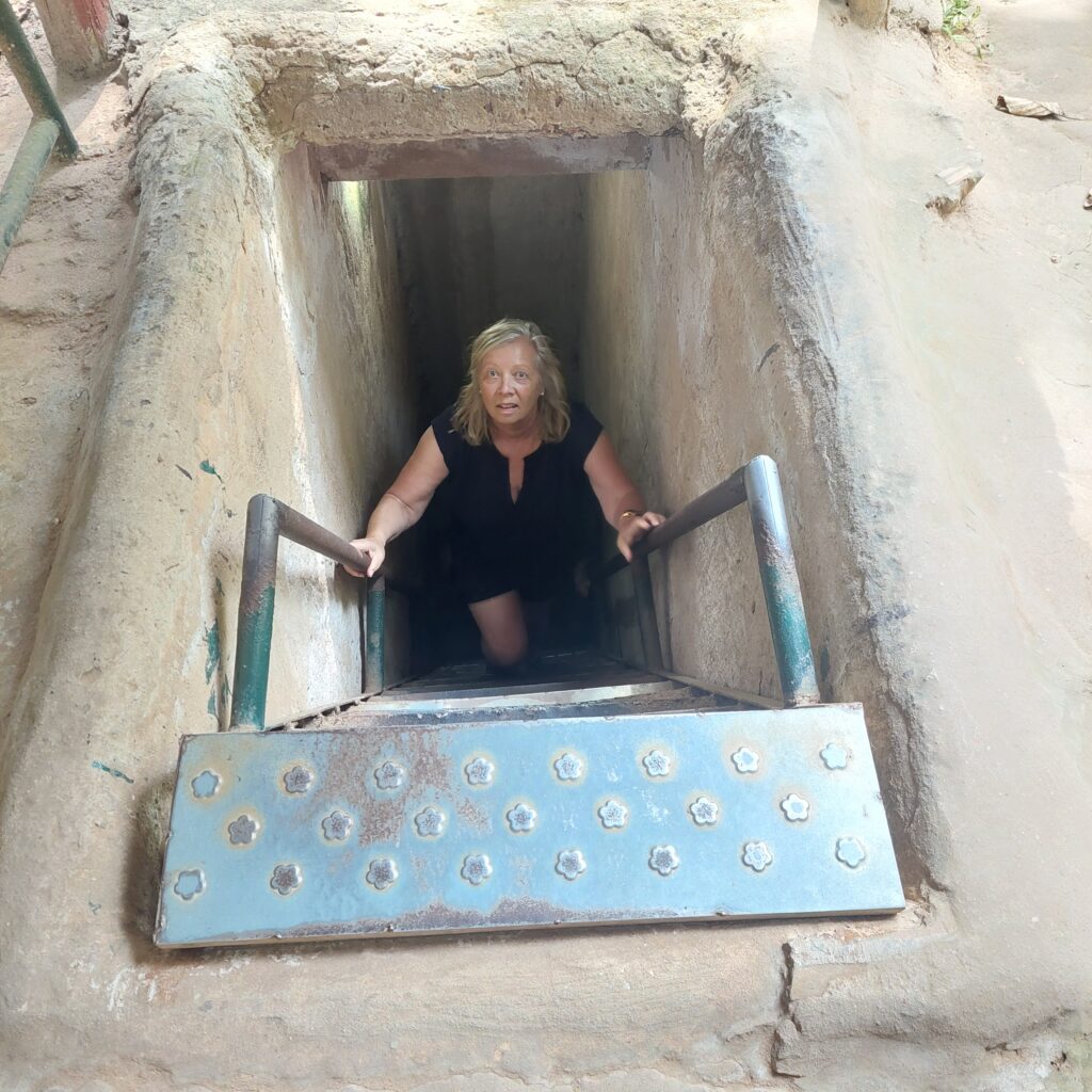 Ett annat viktigt besök för oss var Cu Chi-tunnlarna som är ett omfattande nätverk av underjordiska tunnlar beläget strax utanför Ho Chi Min-staden. Tunnlarna byggdes under Vietnamkriget av Viet Cong som ett strategiskt försvarssystem och gömställe, vilket möjliggjorde överraskningsattacker, lagring av vapen och mat samt skydd mot flygbombningar.